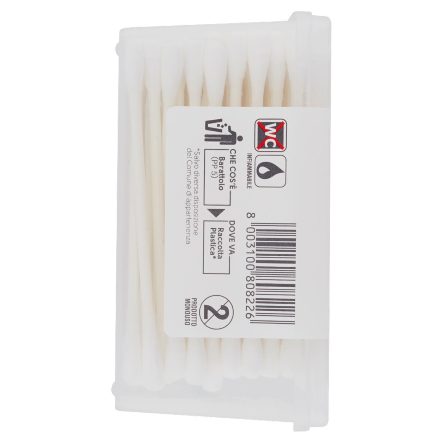 Prodotto monouso Usare il bastoncino una sola volta e per una sola sede; usare con estrema delicatezza; è consigliato l'utilizzo del bastoncino inumidito con liquidi sterili. L'uso improprio può provocare lesioni. Non fare usare direttamente ai bambini. Se usato sui bambini attenzione ai movimenti bruschi del capo.
