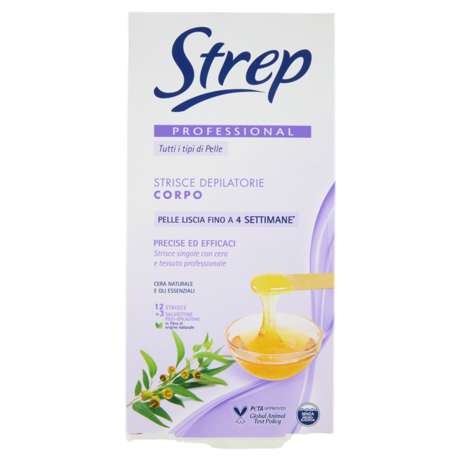Le strisce Professionali Strep sono state studiate per eliminare i peli alla radice, assicurando un Risultato Professionale direttamente a casa tua. Formulate con Cera naturale ed Oli essenziali sono arricchite con Karitè e Vitamina E, dalle proprietà lenitive ed idratanti, per un'epilazione efficace che garantisce una pelle morbida e setosa fino a 4 settimane*. Se utilizzate regolarmente, rendono i peli più deboli, radi e sottili. Il particolare supporto in tessuto garzato e la qualità della cera naturale rendono lo strappo più efficace e meno doloroso garantendo un'epilazione precisa ed impeccabile. *Studio di autovalutazione condotto su campione di 90 consumatrici. Dermatologicamente Testato