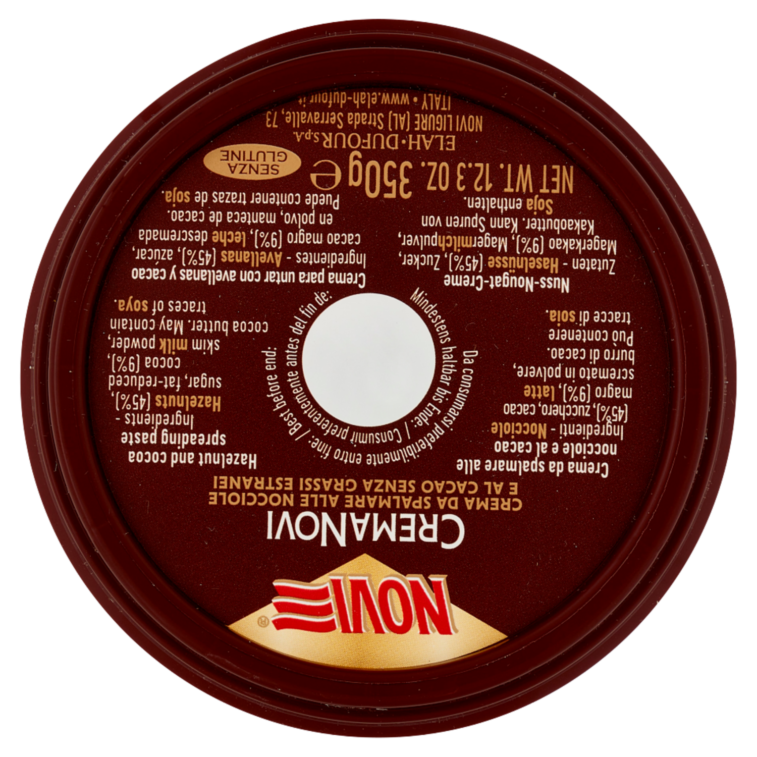 Crema Novi, autentica specialità con il 45% di nocciole italiane selezionate. L'elevata quantità di nocciole conferisce naturalmente alla Crema Novi una spalmabilità ideale: da sempre senza aggiunta di grassi diversi da quelli per natura contenuti nelle nocciole e nel cacao. La Crema Novi è ricca di grassi insaturi, più salutari rispetto ai grassi saturi. * L'olio di nocciola in essa contenuto è costituito da un'elevata quantità di acido oleico, grasso monoinsaturo tipico dell'olio extravergine di oliva. * Nell'ambito di una dieta varia ed equilibrata e di uno stile di vita sano, la sostituzione nella dieta di grassi saturi con grassi insaturi contribuisce al mantenimento di livelli normali di colesterolo. (Gli acidi grassi monoinsaturi e polinsaturi sono grassi insaturi) Senza glutine