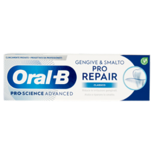 Oral-B Gengive & Smalto Pro-Repair Pro-Science Advanced riduce le irritazioni delle gengive e aiuta a riparare lo smalto. Dentifricio per uso quotidiano, adatto ai denti sensibili. Gengive: Neutralizza i batteri nocivi che causano la placca per ridurre le irritazioni gengivali. Smalto: Remineralizza lo smalto e difende i denti dall'erosione degli acidi.