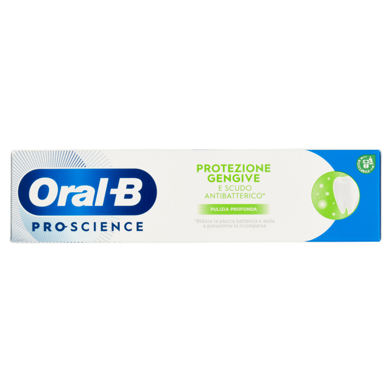 Oral-B Protezione Gengive e Scudo Antibatterico* Pro-science è clinicamente provato per proteggere i tuoi denti e aiutare a mantenere gengive sane. *Riduce la placca batterica e aiuta a prevenirne la ricomparsa La sua esclusiva formula activguard: Offre una riduzione della placca batterica altamente efficace. Aumenta la protezione delle gengive. Dentifricio quotidiano.