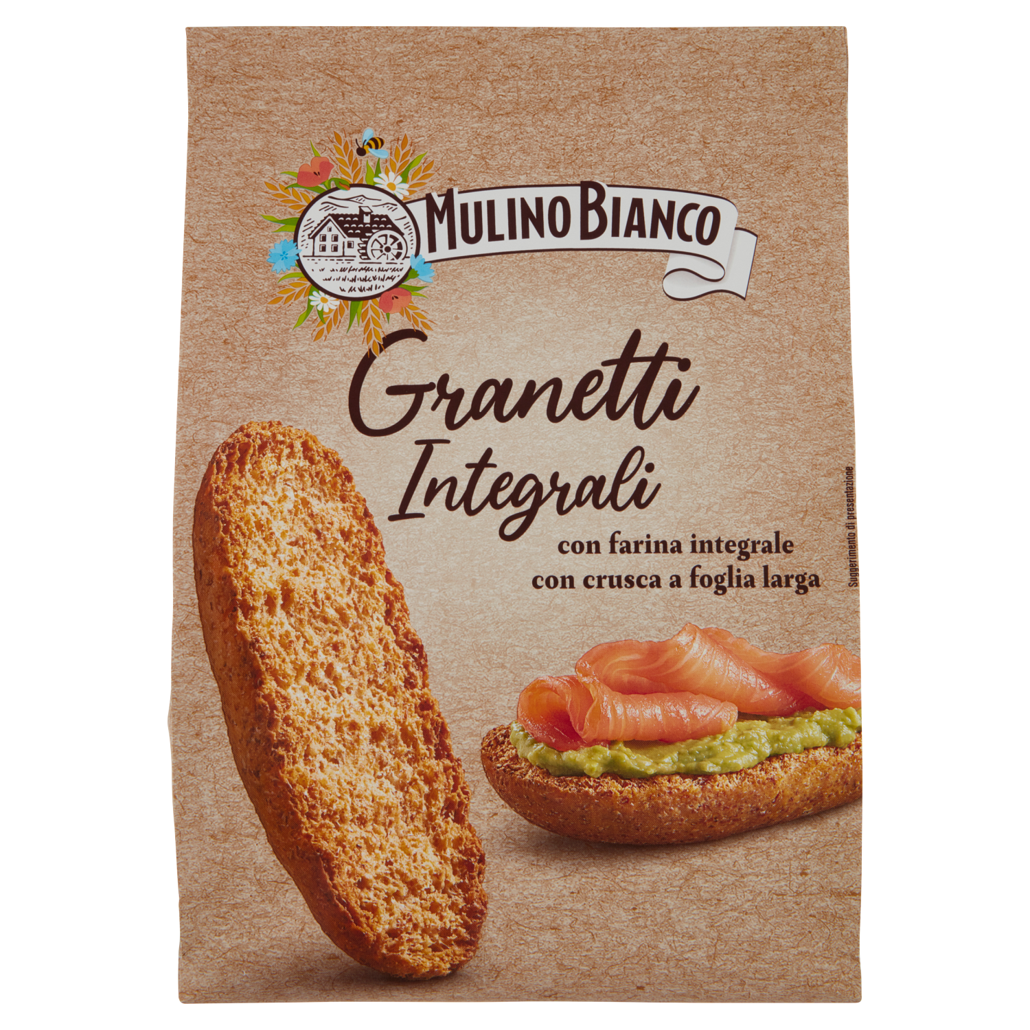 Tutto il buono che senti - Olio di girasole - Farina integrale di frumento con crusca a foglia larga Croccanti fuori ma dal cuore friabile. I Granetti Integrali sono naturalmente ricchi di fibre grazie all'utilizzo di farina integrale con crusca a foglia larga. Tutto il buono che puoi creare I Granetti Integrali sono ideali per accompagnare i tuoi pasti o essere la base ideale per antipasti gustosi. mulinobianco.it