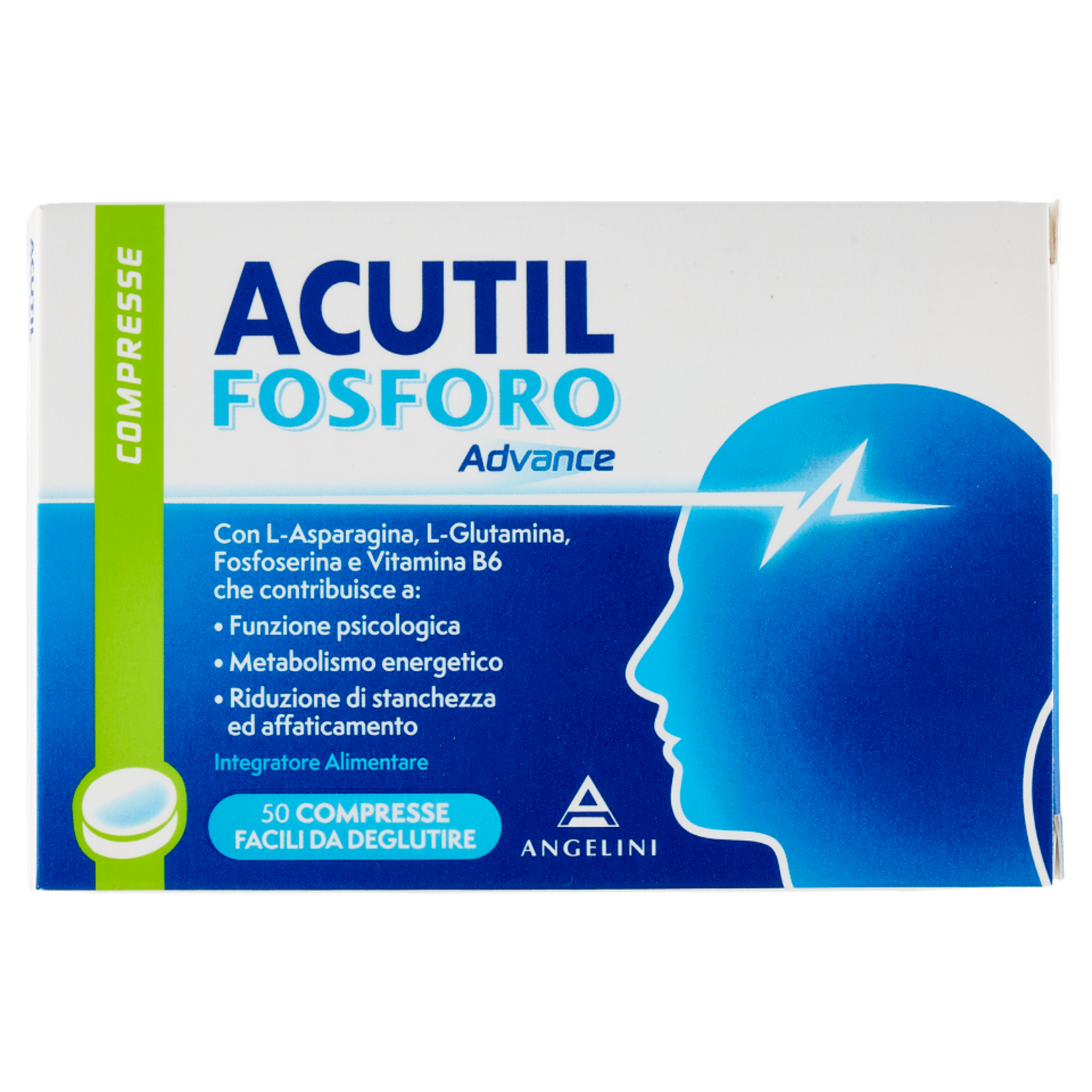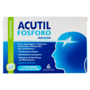 Acutil Fosforo è un integratore alimentare a base di L-Asparagina, L-Glutamina, Fosfoserina* e Vitamina B6 che contribuisce: - alla normale funzione psicologica - al normale metabolismo energetico - alla riduzione di stanchezza ed affaticamento