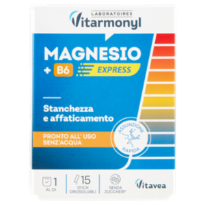 Integratore alimentare ricco in magnesio, vitamina B6 e vitamina B1 che aiutano a ridurre stanchezza e affaticamento