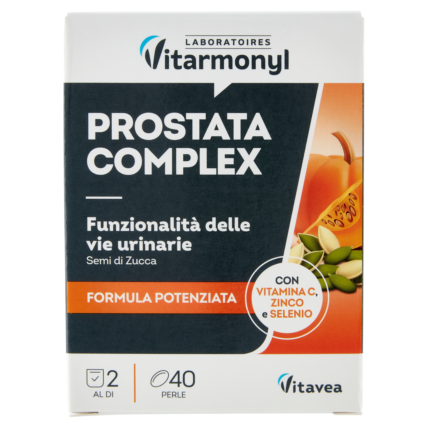 Integratore Alimentare a base di Semi di zucca, riconosciuti per il benessere della prostata e della funzionalità delle vie urinarie. Potenziata con Vitamina C, Zinco e Selenio che contribuiscono alla protezione delle cellule dallo stress ossidativo. Lo Zinco contribuisce alla normale fertilità e al mantenimento dei normali livelli di testosterone nel sangue. Obiettivo Funzionalità della prostata e delle vie urinarie (semi di zucca) Antiossidante (estratto di Acerola) Contribuisce alla normale fertilità e al mantenimento di normali livelli di testosterone nel sangue (Zinco)