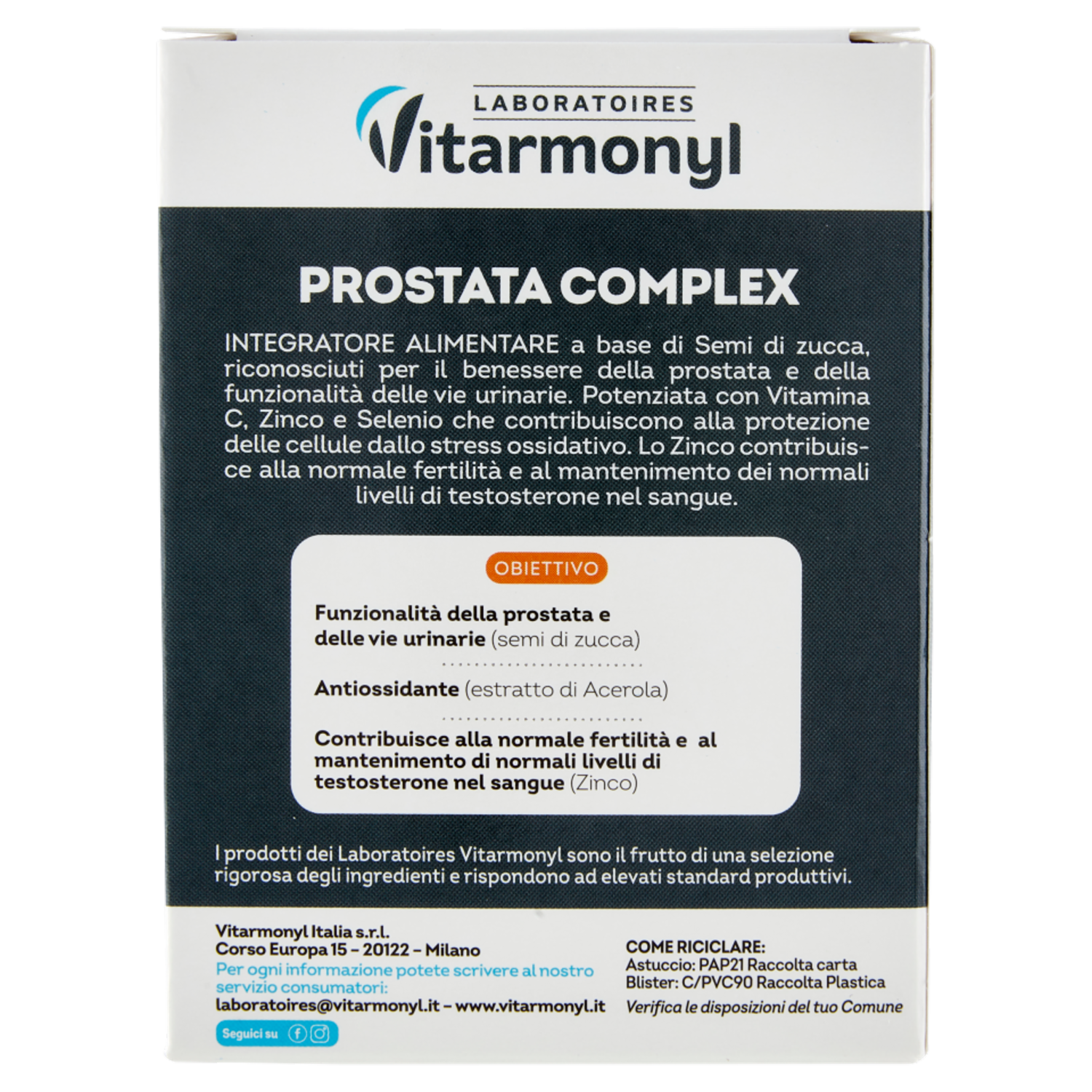Vitarmonyl Italia s.r.l. Corso Europa 15 20122 - Milano Per ogni informazione potete scrivere al nostro servizio consumatori: laboratoires@vitarmonyl.it www.vitarmonyl.it Seguici su Facebook, Instagram
