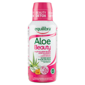 Aloe Beauty Equilibra unisce all'azione depurativa dell'Aloe Vera ingredienti funzionali specifici come il Collagene Idrolizzato e l'Acido Ialuronico, costituenti fisiologici di una pelle tonica e compatta, ed estratto di Calendula, noto per favorire il trofismo e la funzionalità cutanea. Il prodotto è inoltre arricchito con succo di Arancia per un sapore fresco e delicato grazie alla dolcezza naturale della frutta. Le origini dell'Aloe Vera Equilibra La coltivazione dell'Aloe Vera scelta da Equilibra avviene senza utilizzo di sostanze chimiche e la raccolta delle foglie, così come la lavorazione, viene fatta manualmente. Gel d'Aloe puro Il gel d'Aloe Vera presente nel cuore di ogni foglia viene attentamente separato dalla parte esterna eliminando così ogni impurezza, come gli Idrossiantraceni e l'Aloina, presenti nella parte verde della foglia e nella membrana che separa il gel dalla parte verde cerosa. Si ottiene così un gel puro, contenente polisaccaridi e sostanze minerali, con una polpa consistente, in cui sono concentrate le sostanze benefiche dell'Aloe Vera. Le proprietà del gel d'Aloe sono note per favorire le fisiologiche funzioni depurative dell'organismo. La bottiglia realizzata con materiale UV absorber, agisce da schermo protettivo per il contenuto per poter preservare la qualità del prodotto e le sue preziose componenti.