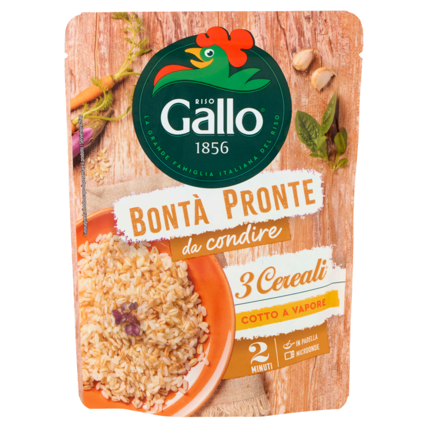 Preparalo così 1) Massaggia la busta per sgranare il prodotto 2) Apri (fino al segno per il microonde) 3a) Microonde: 60 ml acqua, 2 min. 750 w 3b) Padella: Versa in padella e aggiungi ingredienti a piacere,100 ml acqua, 2 min. 4) Condiscilo come vuoi! Pronto in 2 minuti