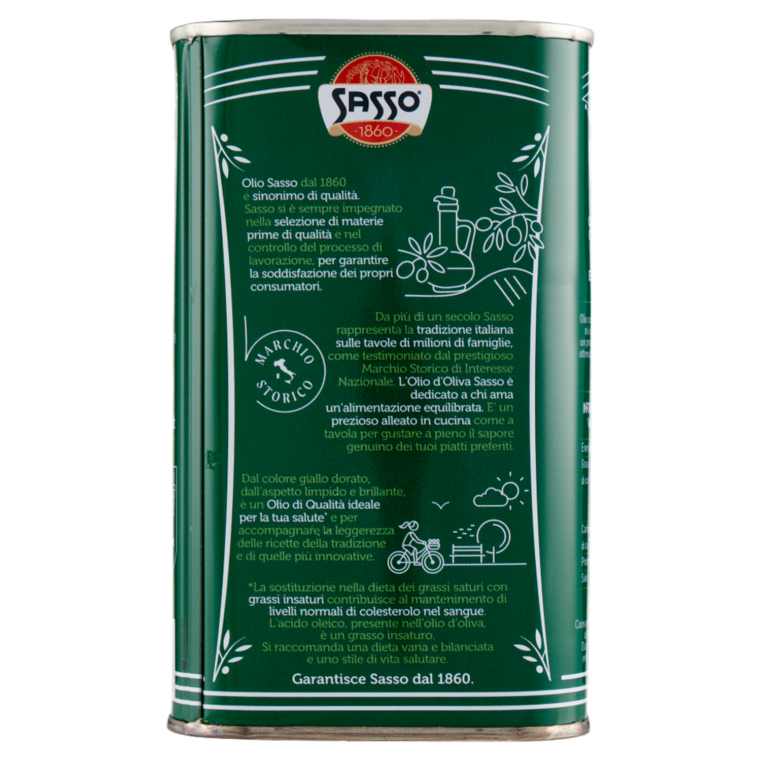 Sasso 1860 Marchio storico Olio Sasso dal 1860 é sinonimo di qualità. Sasso si è sempre impegnato nella selezione di materie prime di qualità e nel controllo del processo di lavorazione, per garantire la soddisfazione dei propri consumatori. Da più di un secolo Sasso rappresenta la tradizione italiana sulle tavole di milioni di famiglie, come testimoniato dal prestigioso Marchio Storico di Interesse Nazionale. L'Olio d'Oliva Sasso è dedicato a chi ama un'alimentazione equilibrata. È un prezioso alleato in cucina come a tavola per gustare a pieno il sapore genuino dei tuoi piatti preferiti. Dal colore giallo dorato, dall'aspetto limpido e brillante, è un Olio di Qualità ideale per la tua salute* e per accompagnare le leggerezza delle ricette della tradizione e di quelle più innovative. *La sostituzione nella dieta dei grassi saturi con grassi insaturi contribuisce al mantenimento di livelli normali di colesterolo nel sangue. L'acido oleico, presente nell'olio d'oliva, è un grasso insaturo. Si raccomanda una dieta varia e bilanciata e uno stile di vita salutare. Garantisce Sasso dal 1860.