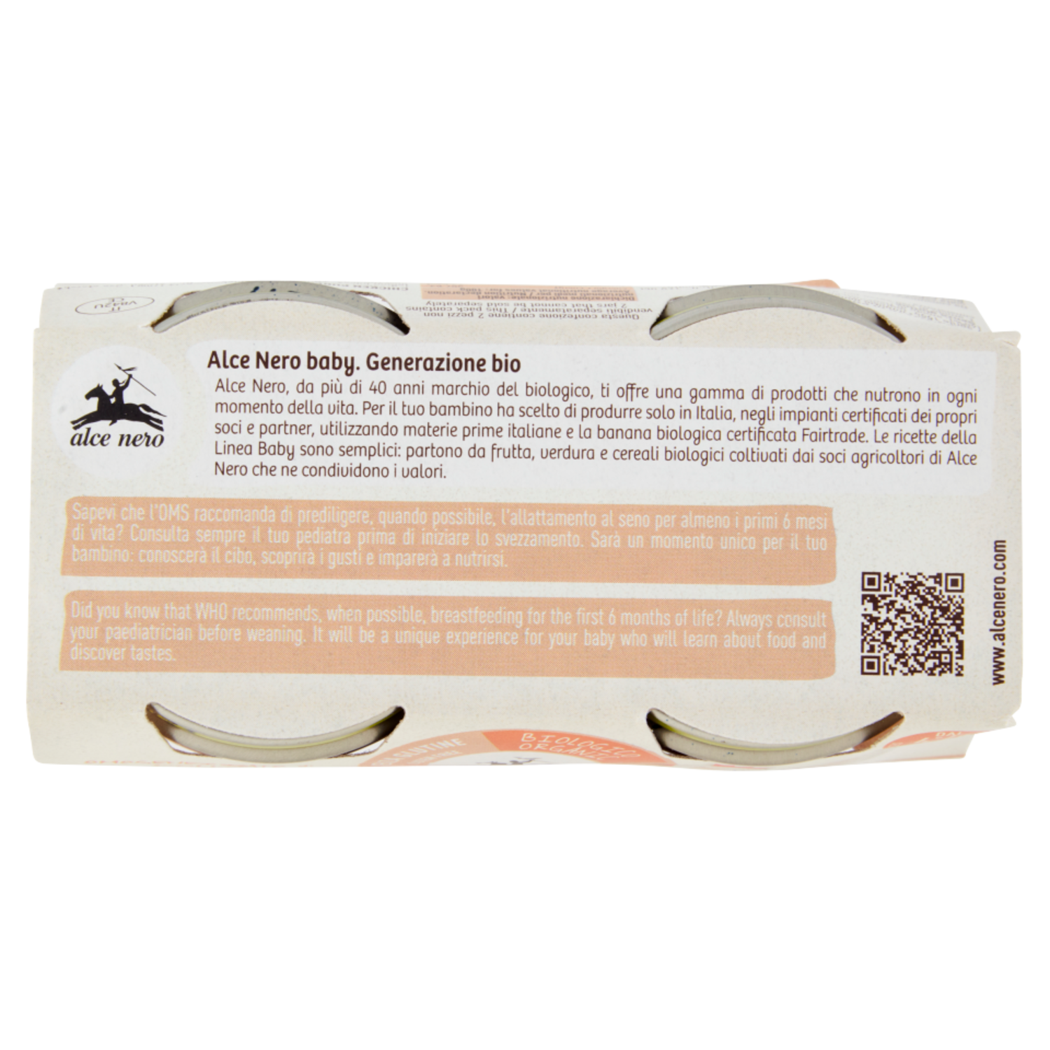 Alce Nero baby. Generazione bio Alce Nero, da più di 40 anni marchio del biologico, ti offre una gamma di prodotti che nutrono in ogni momento della vita. Per il tuo bambino ha scelto di produrre solo in Italia, negli impianti certificati dei propri soci e partner, utilizzando materie prime italiane e la banana biologica certificata Fairtrade. Le ricette della Linea Baby sono semplici: partono da frutta, verdura e cereali biologici coltivati dai soci agricoltori di Alce Nero che ne condividono i valori.
