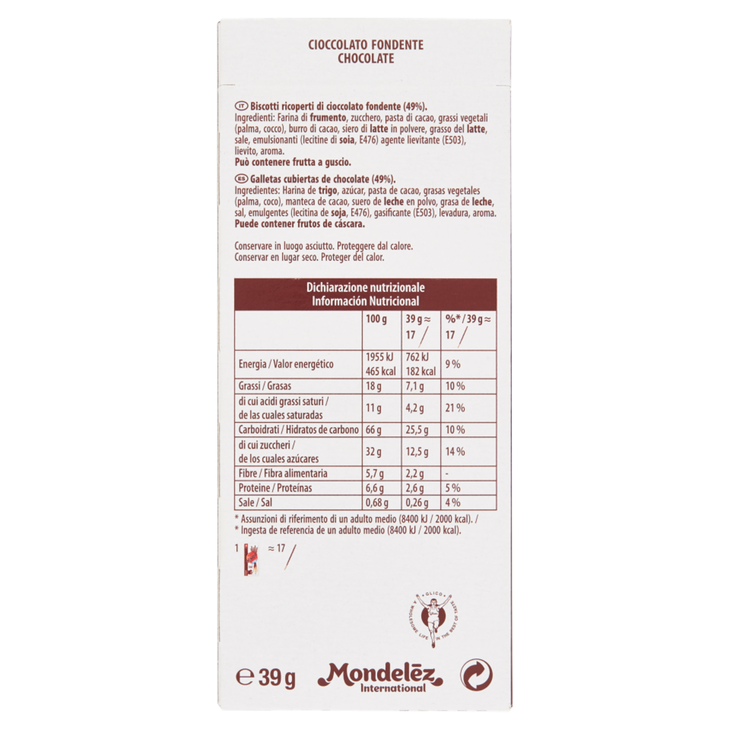 | 100 g | 39 g ≈ 17 biscotti | %* / 39 g ≈ 17 biscotti | |
