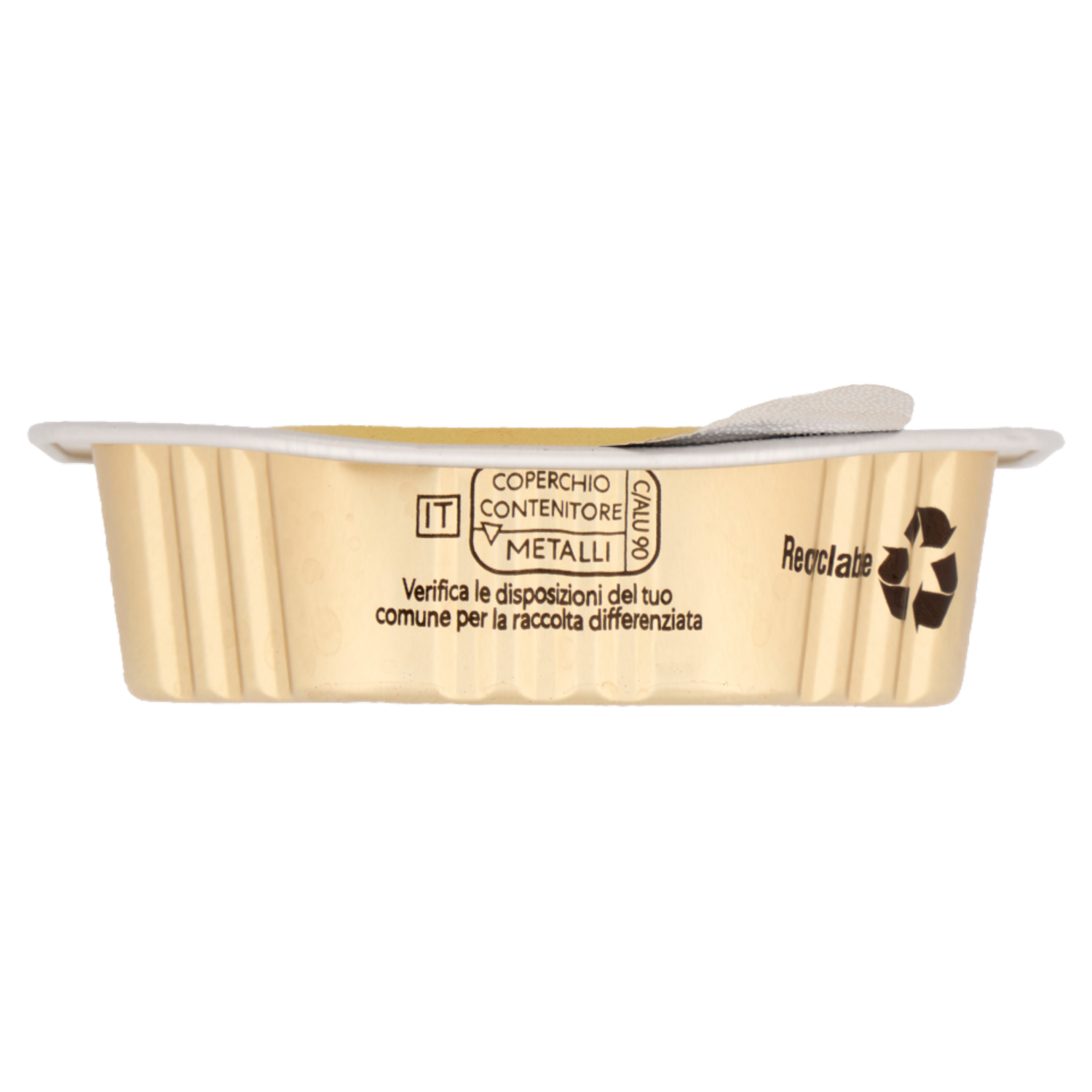 Quantità d'impiego e modalità d'uso: Un gatto di 3 kg necessita di 2 - 3 vaschette al giorno, un gatto di 4 kg necessita di 3 - 3 vaschette al giorno, un gatto di 5 kg necessita di 3 - 4 vaschette al giorno. 1 vaschetta può essere sostituita con 18 - 20 g di alimento secco. Calcolare le calorie derivanti dagli snack. Regola la quantità di alimento in base alle esigenze del tuo gatto. Come? Visita il nostro sito. Lasciare sempre a disposizione dell'acqua fresca. Servire a temperatura ambiente, conservare in frigorifero per 2 giorni. 71 kcal / 85 g