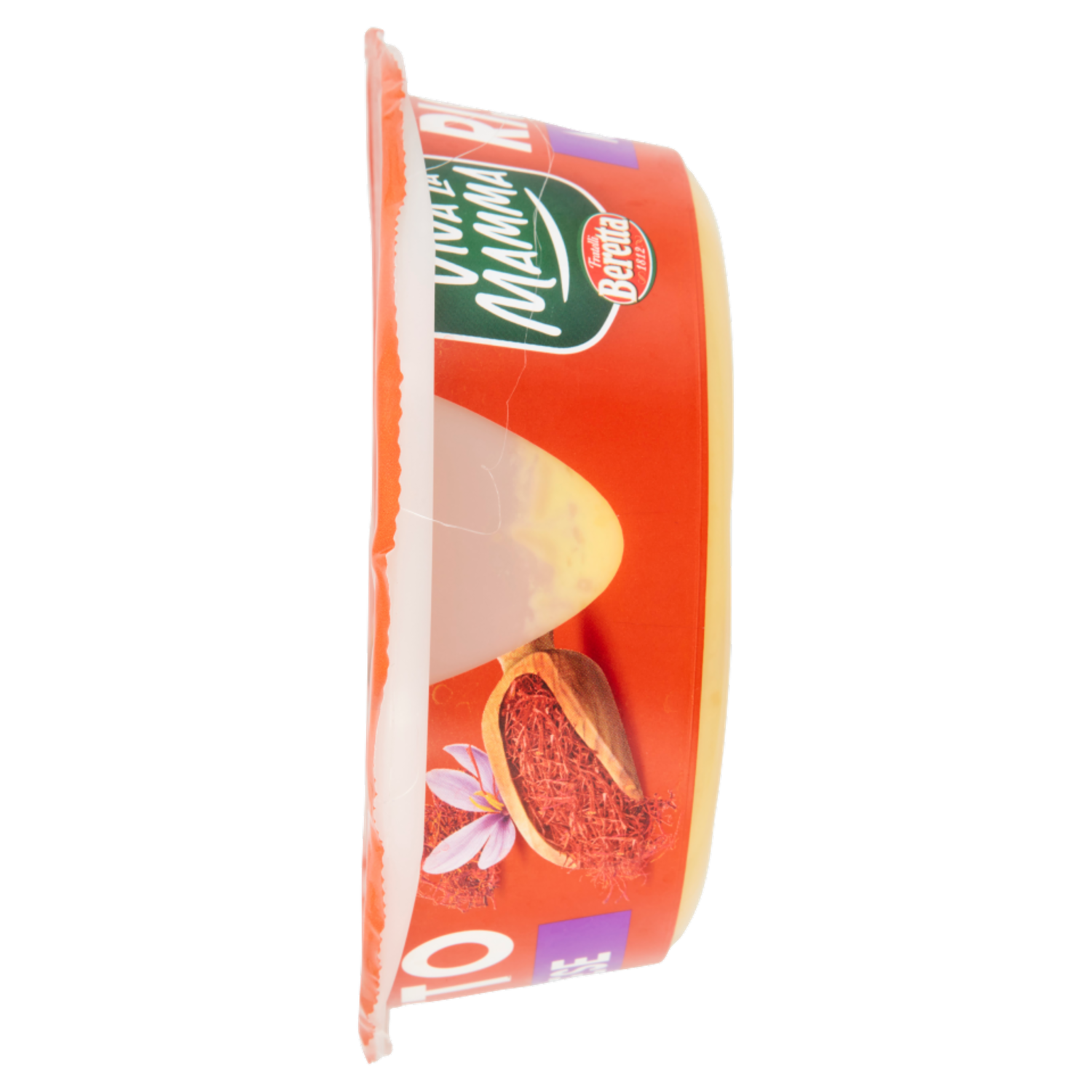 Salsa allo zafferano 63% di cui: acqua, panna, formaggio (latte, sale, caglio), cipolla, vino bianco, amido modificato di mais, zafferano 0,03%, olio di semi di girasole, sale, aroma naturale