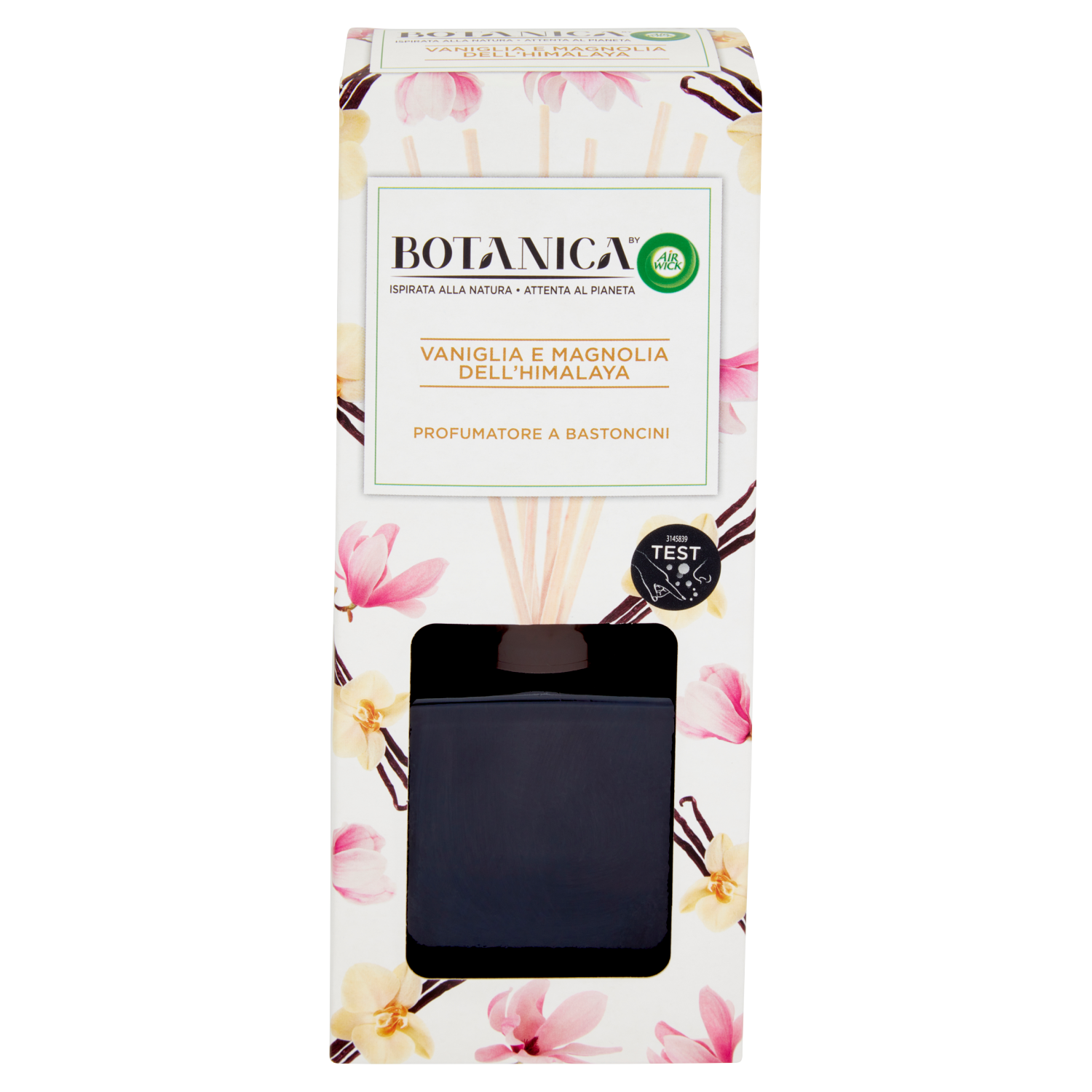 ATTENZIONE PRIMA DELL'USO SI PREGA DI LEGGERE ATTENTAMENTE LE AVVERTENZE E LE PRECAUZIONI RIPORTATE IN ETICHETTA E DI CONSERVARLE PER FUTURE CONSULTAZIONI. Usare solo come indicato. AVVERTENZA: IL PRODOTTO CONTIENE PARTI CHE POSSONO CAUSARE IL RISCHIO DI SOFFOCAMENTO. Botanica by Air Wick Profumatore a Bastoncini - Vaniglia e Magnolia dell'Himalaya. Deodorante per l'ambiente. Provoca grave irritazione oculare. Nocivo per gli organismi acquatici con effetti di lunga durata. Contiene Linalool, Coumarin, Limonene, Piperonal ed Ethyl Methylphenylglicidate. Può provocare una reazione allergica. In caso di consultazione di un medico, tenere a disposizione il contenitore o l'etichetta del prodotto. Tenere fuori dalla portata dei bambini. IN CASO DI INGESTIONE: contattare immediatamente il CENTRO ANTIVELENI di Milano (Tel. 02 66101029) o un medico. IN CASO DI CONTATTO CON GLI OCCHI: sciacquare accuratamente per parecchi minuti. Togliere le eventuali lenti a contatto se è agevole farlo. Continuare a sciacquare. Se l'irritazione degli occhi persiste, consultare un medico. Le persone sensibili all'uso di profumo dovranno usare questo prodotto con cautela. I deodoranti per l'ambiente NON sostituiscono le buone pratiche igieniche. Per informazioni sugli ingredienti: www.rbeuroinfo.com Riciclare quando completamente vuoto. AISE www.cleanright.eu