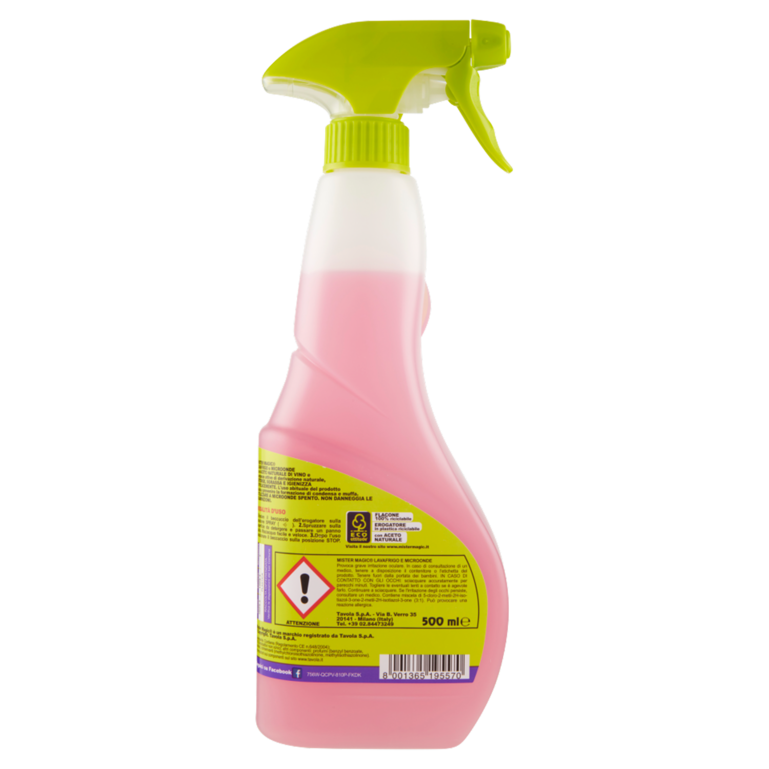 Mister Magic Lavafrigo e Microonde con Aceto Naturale di Vino e sostanze attive di derivazione naturale, Deterge, Sgrassa e Igienizza Efficacemente. L'uso abituale del prodotto aiuta a prevenire la formazione di condensa e muffa. Eco attitude Flacone 100% riciclabile Erogatore in plastica riciclabile con Aceto Naturale Visita il nostro sito www.mistermagic.it