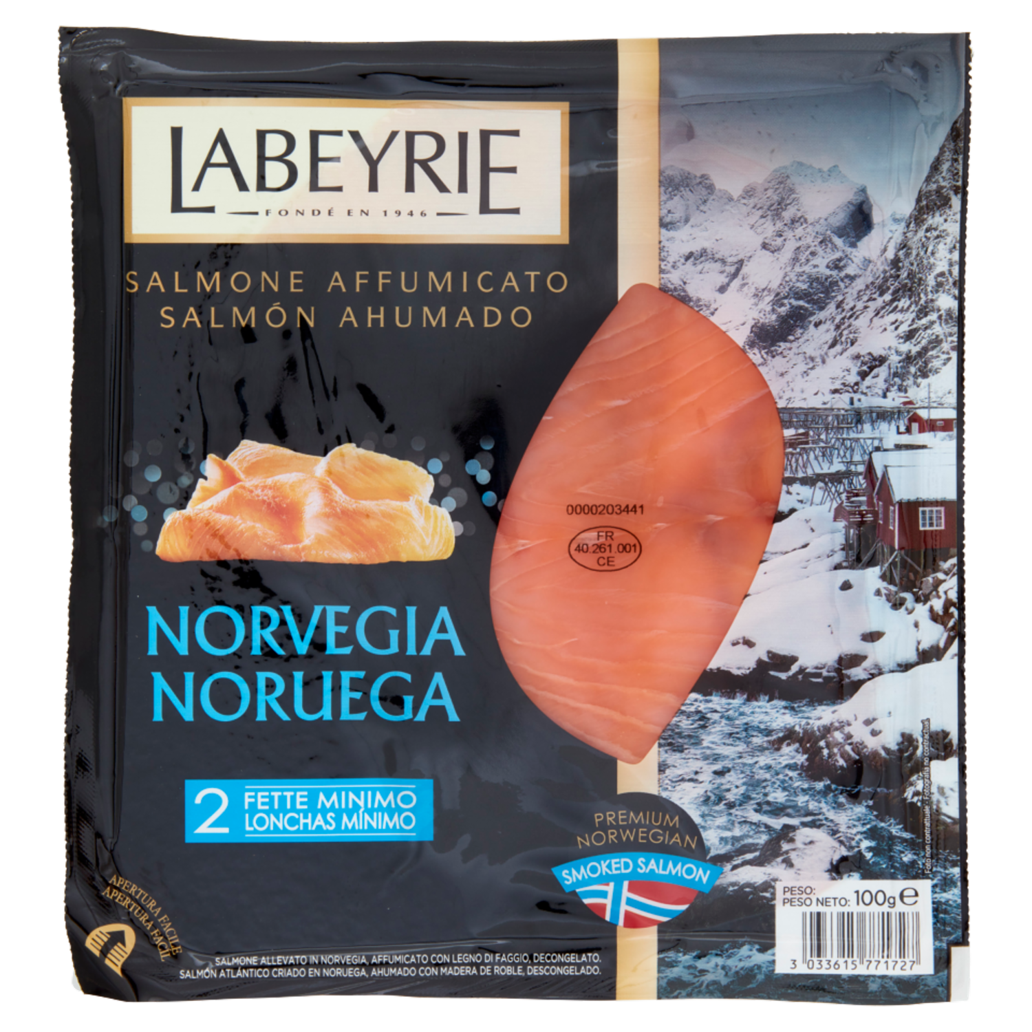 Labeyrie seleziona per voi il miglior di Salmone Qualità: l'impegno di Labeyrie Selezione I nostri allevamenti vengono verificati e selezionati per la qualità delle loro acque. Tutti i nostri impegni in ambito qualitativo sono certificati da un organismo indipendente. Savoir faire Da più di mezzo secolo l'abilità e l'esperienza dei nostri specialisti si tramanda alle nuove generazioni per la lavorazione e l'affumicatura dei filetti di salmone. Tracciabilità Grazie a 70 rigorosi punti di controllo durante il processo produttivo, garantiamo la completa tracciabilità dagli allevamenti fino ai nostri clienti. Norvegia Scoprirete la genuina freschezza dei fiordi norvegesi gustando questo salmone affumicato con legno di faggio, che si distingue per la tenerezza delle carni e per un gusto morbido e bilanciato. Scozia Scoprirete la sincera tradizione ed il tipico carattere della Scozia gustando questo salmone affumicato con legno di quercia, unico per la sua genuinità e dall'esclusivo sapore.
