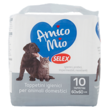 I tappetini Igienici Antiodore Amico Mio Selex sono ideali per educare i cuccioli a sporcare solo in determinati spazi, e per i cani malati o incontinenti o per le femmine durante il ciclo. Permettono di mantenere puliti gli ambienti assicurando benessere per l'animale e per l'uomo.
