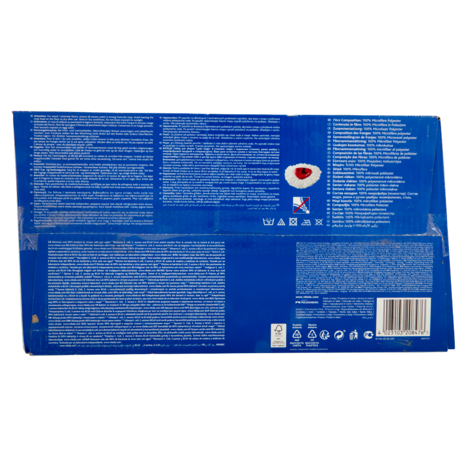 * Rimuove E. coli, S. aureus e BCoV da pavimenti in legno sigillati e piastrelle in ceramica, come testato in un laboratorio indipendente. www.vileda.com