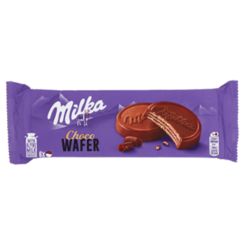 Wafer ricoperto con cioccolato al latte delle Alpi (60 %) e con ripieno (27 %) al cacao