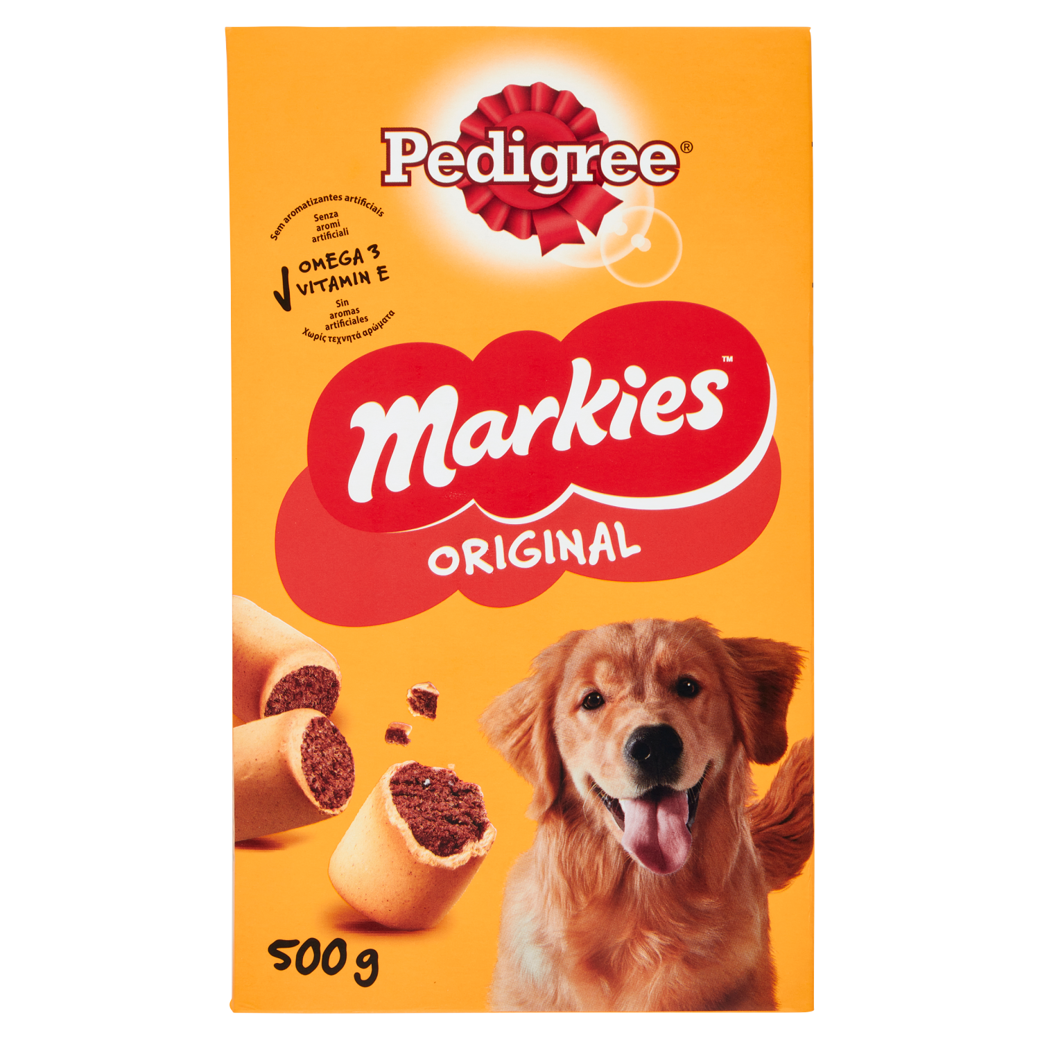 Biscotti croccanti pieni di succulento sapore - Pedigree Markies sono meravigliosamente croccanti fuori e deliziosamente gustosi all'interno. - Omega 3 per aiutarli a rimanere in forma - Con Vitamina E per aiutare a supportare le sue difese naturali - Minerali, tra cui il Calcio, per aiutare a mantenere ossa forti - Senza aromi artificiali
