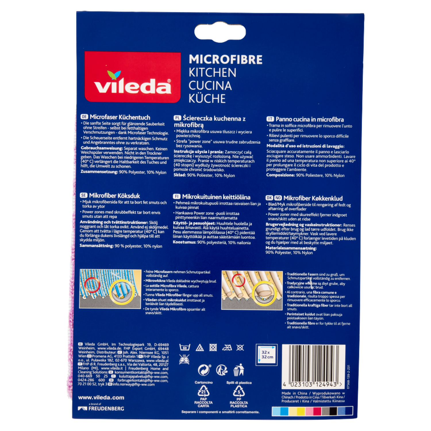 - Trama in soffice microfibra per rimuovere l'unto e pulire le superfici. - Rilievi pulenti per rimuovere lo sporco difficile senza graffiare. - La sottile Microfibra Vileda, cattura interamente lo sporco. - Al contrario, una fibra comune e tradizionale, risulta troppo spessa per rimuovere efficacemente lo sporco.