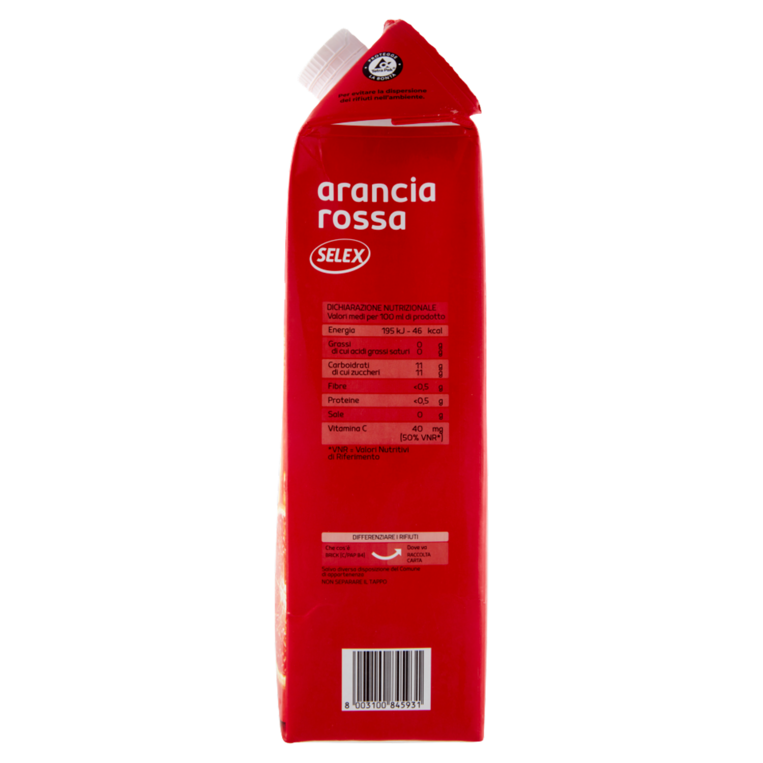Bevanda analcolica di succhi da concentrato di arancia rossa ed arancia bionda con aggiunta di vitamina C. Frutta: 40% minimo
