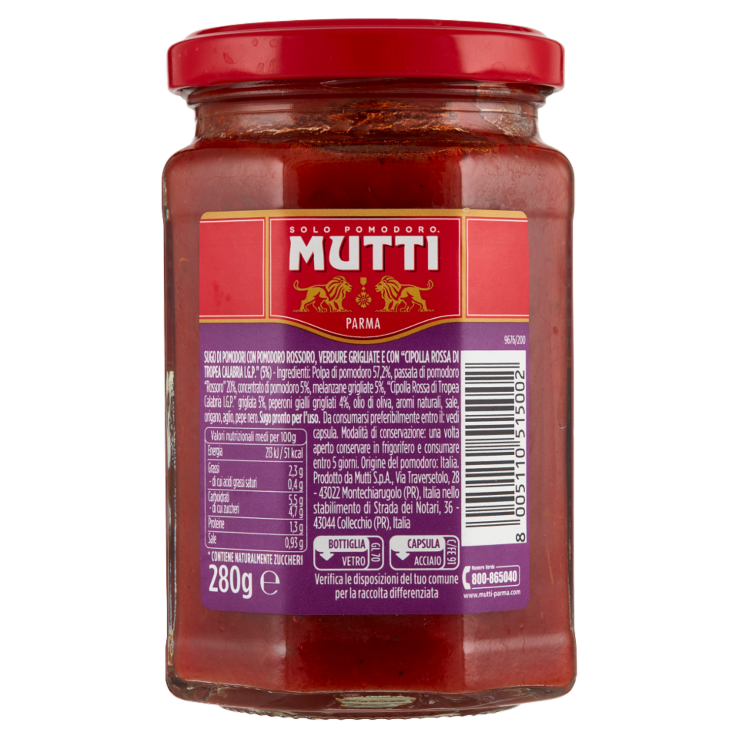 Questo Sugo Mutti racchiude la selezione dei migliori pomodori, tra cui la varietà Rossoro, creando il connubio perfetto con le Verdure Grigliate e la Cipolla Rossa di Tropea Calabria IGP. Il suo gusto ricco e genuino è espressione dell'impegno di Mutti e dei suoi agricoltori nella selezione accurata di una materia prima di eccellenza.