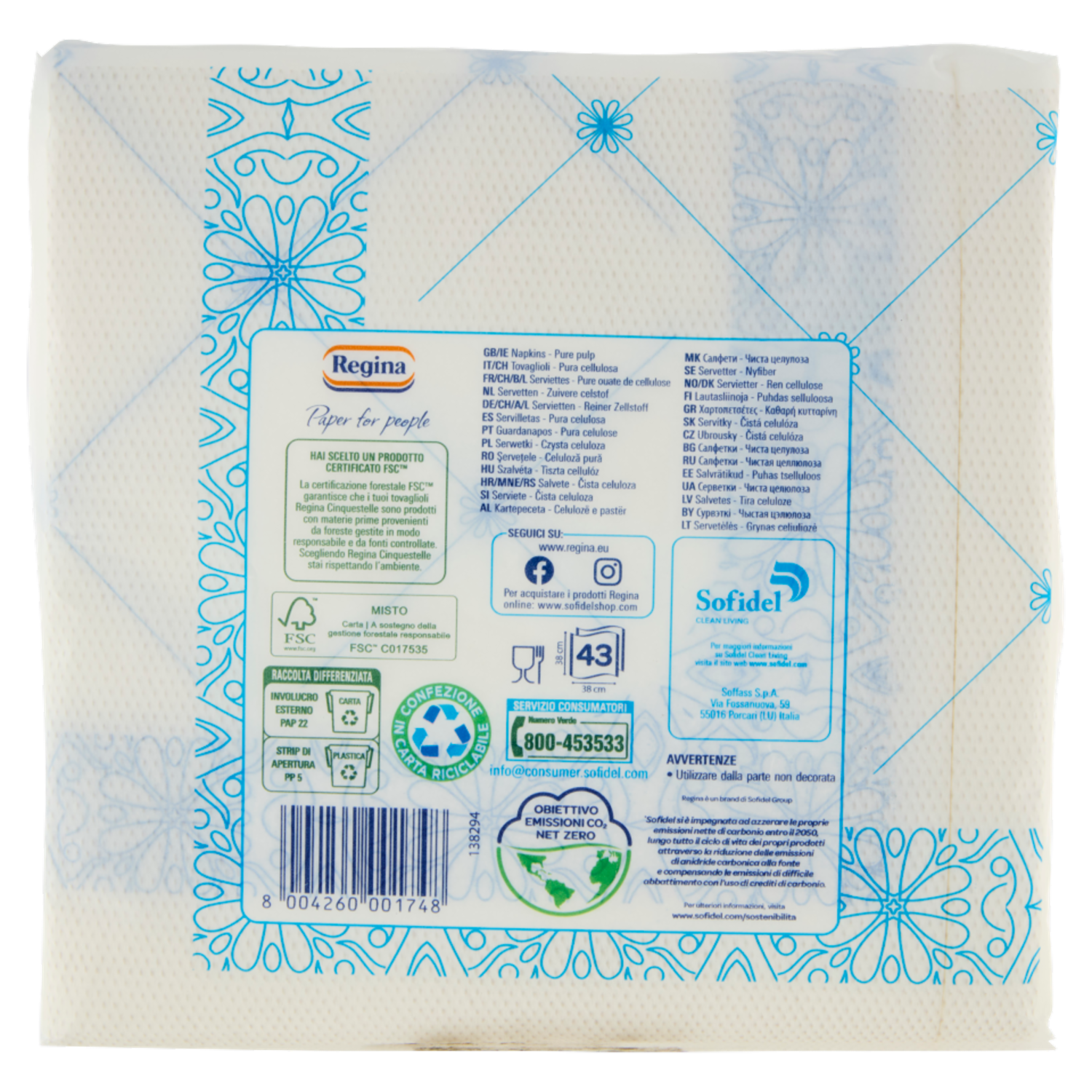 Regina Cinquestelle tovaglioli 2 veli 38x38 43 pezzi