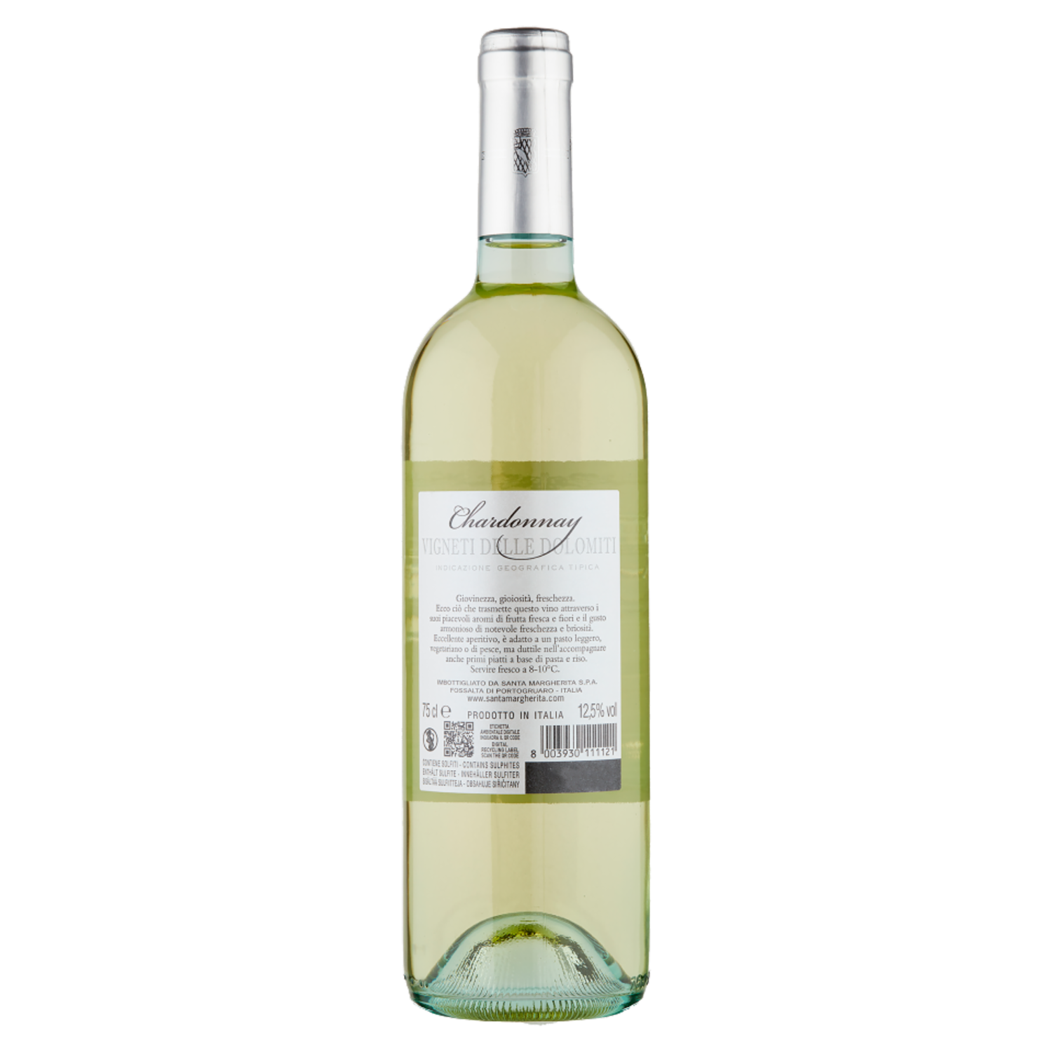 Chardonnay Vigneti delle Dolomiti IGT, vino bianco italiano. Giovinezza, gioiosità, freschezza. Ecco ciò che trasmette questo vino attraverso i suoi piacevoli aromi di frutta fresca e fiori e il gusto armonioso di notevole freschezza e briosità. Vigneti delle Dolomiti Indicazione Geografica Tipica