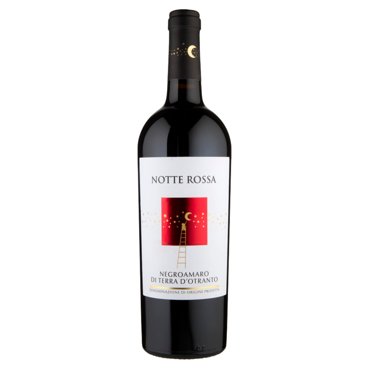 Negroamaro di Terra d'Otranto DOP, vino rosso italiano. Un Negroamaro che libera tutte le sfumature olfattive tipiche del vitigno, dai frutti di bosco alle erbe mediterranee, arricchito da note speziate. Di grande corpo, morbido e armonico, con un finale piacevolmente persistente. Negroamaro di Terra d'Otranto Denominazione di Origine Protetta