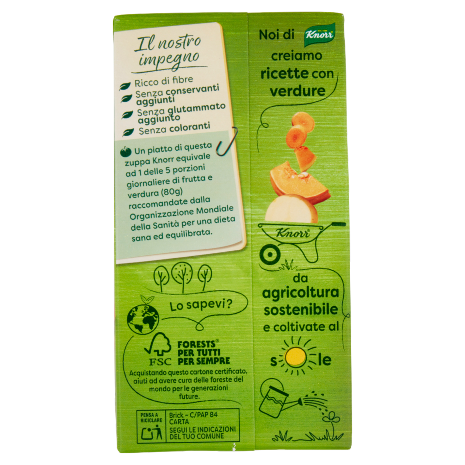 Il nostro impegno - Ricco di fibre - Senza conservanti aggiunti - Senza glutammato aggiunto - Senza coloranti Un piatto di questa zuppa Knorr equivale ad 1 delle 5 porzioni giornaliere di frutta e verdura (80 g) raccomandate dalla Organizzazione Mondiale della Sanità per una dieta sana ed equilibrata.