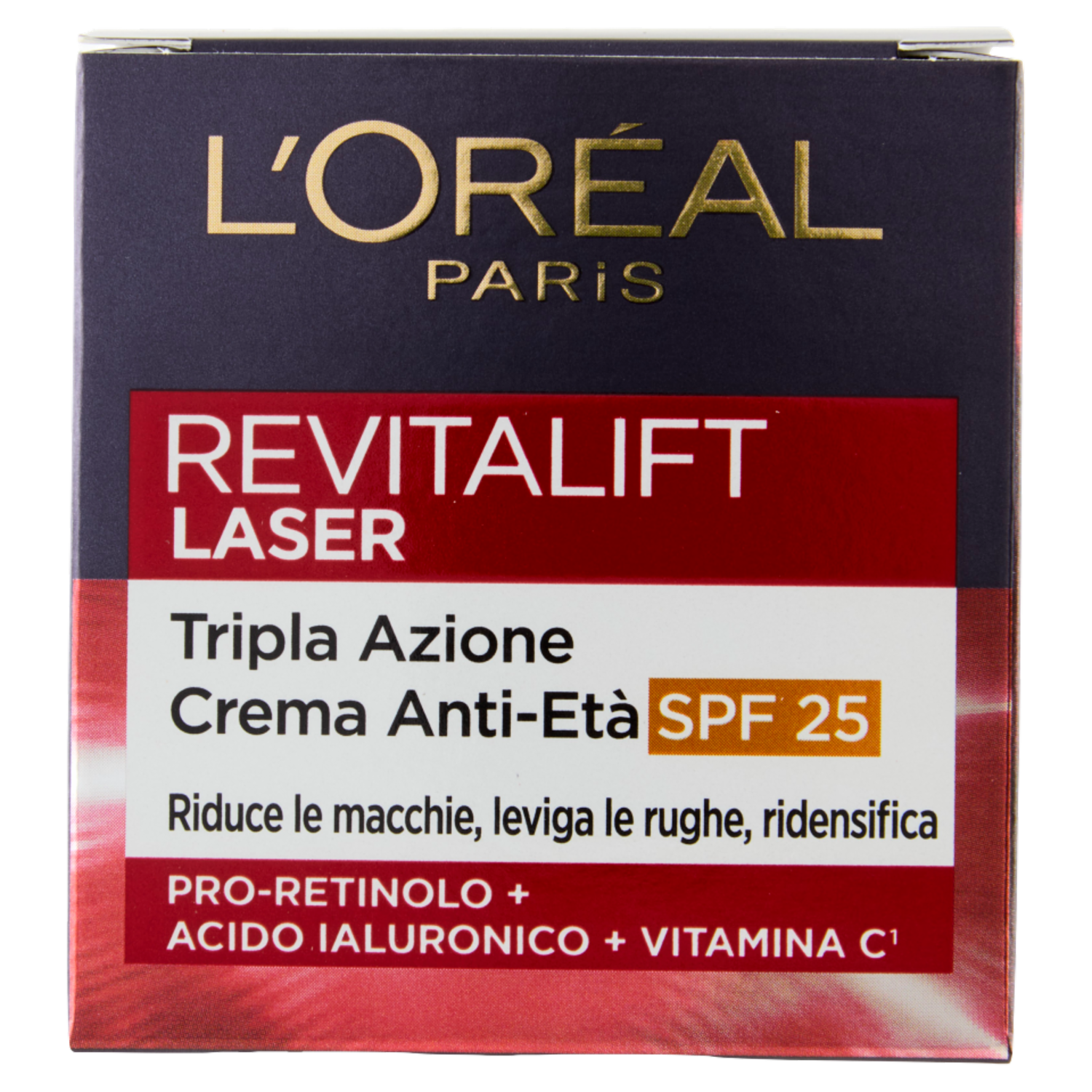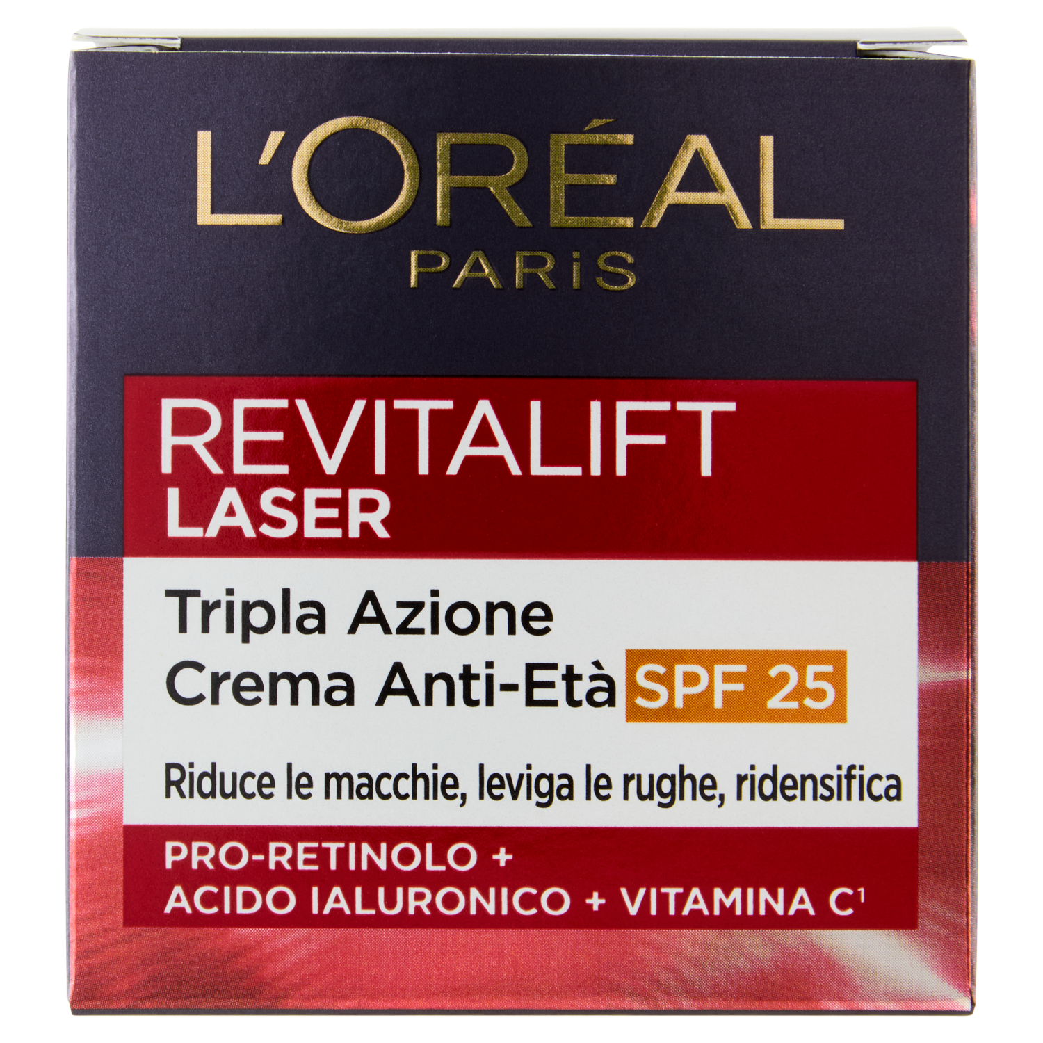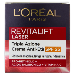 Dalla scienza alla bellezza Da più di 30 anni, i Laboratori L'Oréal Paris mettono a punto innovazioni scientifiche e tecnologiche sempre più efficaci, per sublimare la bellezza delle donne di tutte le età. I Laboratori L'Oréal sviluppano formule ad elevata efficacia e le testano clinicamente in collaborazione con esperti di tutto il mondo. Attivi scientificamente avanzati e texture preziose per offrire ad ogni donna un'esperienza di trattamento unica. Una pelle sublime oggi. Una pelle più giovane domani. Per completare il vostro trattamento - Applicare quotidianamente i trattamenti Revitalift Laser X3 Giorno SPF20 e Notte. - Per una maggiore efficacia, utilizzare il Siero Revitalift Laser X3 prima del proprio trattamento quotidiano. - Per un trattamento più mirato, utilizzare Revitalift Laser X3 Occhi.