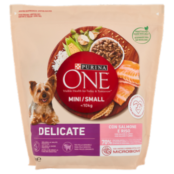 Per cani di piccola taglia con una digestione delicata Aiuta a mantenere un microbioma intestinale sano La polpa di barbabietola da zucchero aiuta a mantenere un microbioma intestinale sano, essenziale per la buona salute del tuo cane Senza coloranti, aromi artificiali e conservanti artificiali aggiunti Con un prebiotico naturale che è provato migliorare la salute digestiva Supporta la salute della pelle e del pelo aiuta a prendersi cura della pelle sensibile grazie allo zinco e ad elevati livelli di acidi grassi Omega 3 Aiuta a supportare difese naturali forti grazie ad una speciale combinazione di antiossidanti e proteine di alta qualità Altamente digeribile grazie a ingredienti di alta qualità Sviluppato dai veterinari e dai nutrizionisti PURINA Piccole crocchette fragranti e deliziose e bocconi più morbidi° PURINA ONE ⁽ ⁾Salute visibile oggi e domani PURINA ONE Mini/Small <10kg Delicate è una ricetta dal gusto delizioso con Salmone, con elevato contenuto di acidi grassi Omega 3 per aiutare a gestire la sua pelle sensibile e con un prebiotico naturale per supportare la sua digestione delicata. Il tuo cane di piccola taglia ha esigenze nutrizionali specifiche. I nostri esperti PURINA hanno sviluppato una nutrizione avanzata e specifica che aiuta a mantenere sano il micorbioma intestinale. Un pasto delizioso grazie a piccole fragranti crocchette e a bocconi più morbidi°. Progettato per essere riciclabile* *Questa confezione è progettata per essere riciclabile. Le modalità di raccolta e riciclo di questa confezione possono variare in ogni paese. Verifica sul sito www.purina.eu/packaging °morbidezza variabile nel tempo - Apertura salvafreschezza / Apertura facilitata - Progettato per essere riciclabile* - <10kg - Sviluppato dai veterinari e dai nutrizionisti PURINA - Migliora la salute digestiva - Per pelle sensibile - 70% Proteine animali sul totale delle proteine - *Questa confezione è progettata per essere riciclabile. Le modalità di raccolta e riciclo di questa confezione possono variare in ogni paese. Verifica sul sito www.purina.eu/packaging
