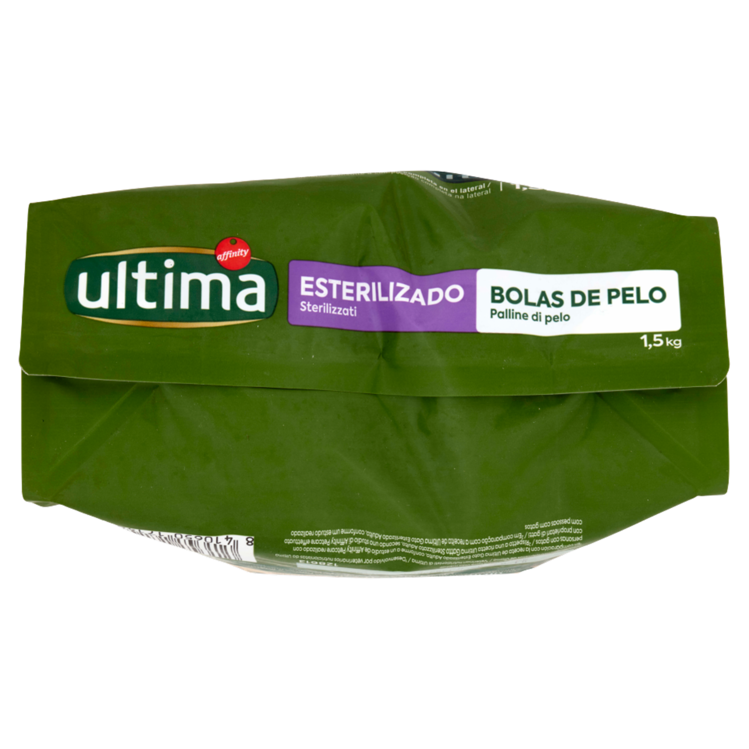 Con ingredienti di alta qualità: Tacchino - 1ˢᵗ Orzo e cereali integrali Verdure Sterilizzati Palline di pelo Ultima Sterilizzati Palline di pelo è una ricetta adattata alle necessità di quei gatti sterilizzati con predisposizione alla formazione di palline di pelo. È una formula con un alto contenuto di fibre per favorire la riduzione della formazione di palline di pelo, facilitandone l'espulsione tramite l'apparato digerente. Inoltre, la ricetta è sviluppata con un livello moderato di grassi e calorie che, insieme al contenuto di fibre e L-carantina, aiuta a tenere sotto controllo il peso. Una buona salute inizia da una buona alimentazione - Controllo del peso Livello moderato di grassi e calorie, con fibra** - Controllo delle palline di pelo Alto contenuto di fibra per aiutare a ridurre la formazione di palline di pelo, favorendo l'escrezione del pelo con le feci - Pelo lucido e benessere della pelle Acidi grassi omega-3 e omega-6, biotina e zinco - Effetto saziante Miscela di fibre vegetali - Contribuisce a mantenere barriere e difese naturali Grazie a omega 6, biotina, zinco e ai livelli di vitamine C, D ed E **Energia metabolizzabile: 3715 kcal/kg