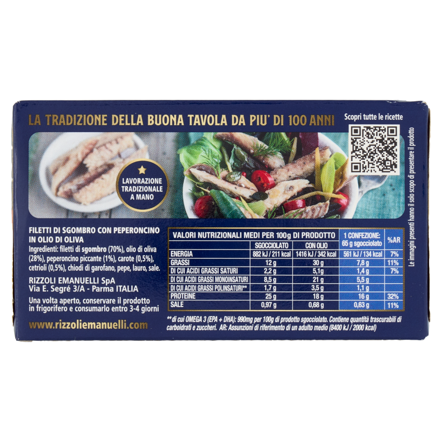 Filetti di sgombro con peperoncino in olio di oliva (28%)