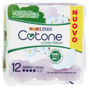 100% Cotone bio sulla pelle Filtrante in cotone per esaltare la sensazione di delicatezza sulla pelle. 100% Assorbenza Lines Cuore in cellulosa biologica certificata, per garantirti tutta l'assorbenza Lines. Novità - Biodegradabile e compostabile Grazie all'utilizzo di materie prime certificate e di origine naturale, il nuovo assorbente Lines Cotone è biodegradabile e compostabile. Prodotto biodegradabile e compostabile** con materie prime di origine naturale certificate Si disintegra** in meno di 90 giorni*** Umido /Organico Fare una raccolta differenziata fa bene all'ambiente ***Se trattato in un impianto di compostaggio **In conformità alla norma EN 13432