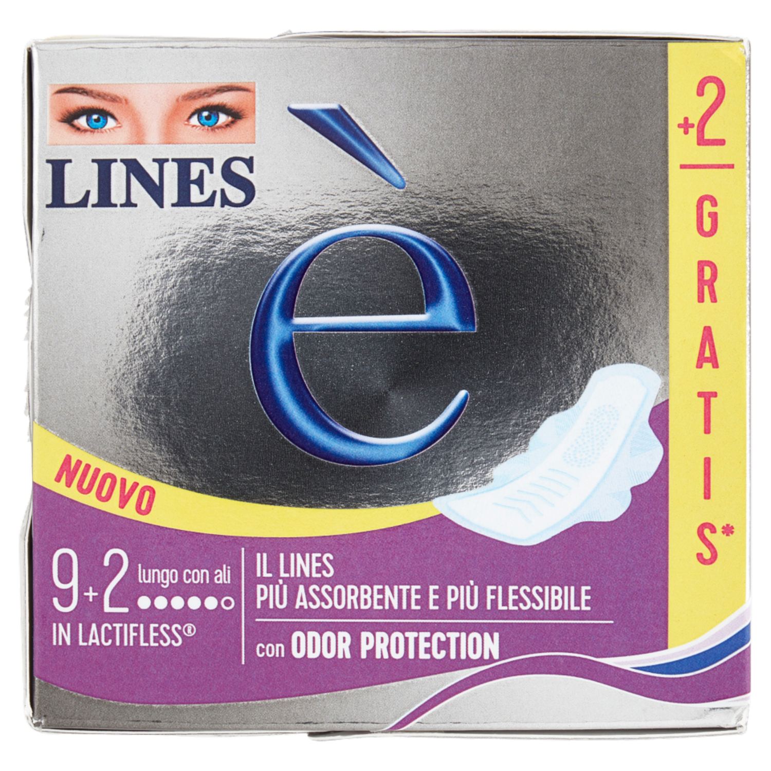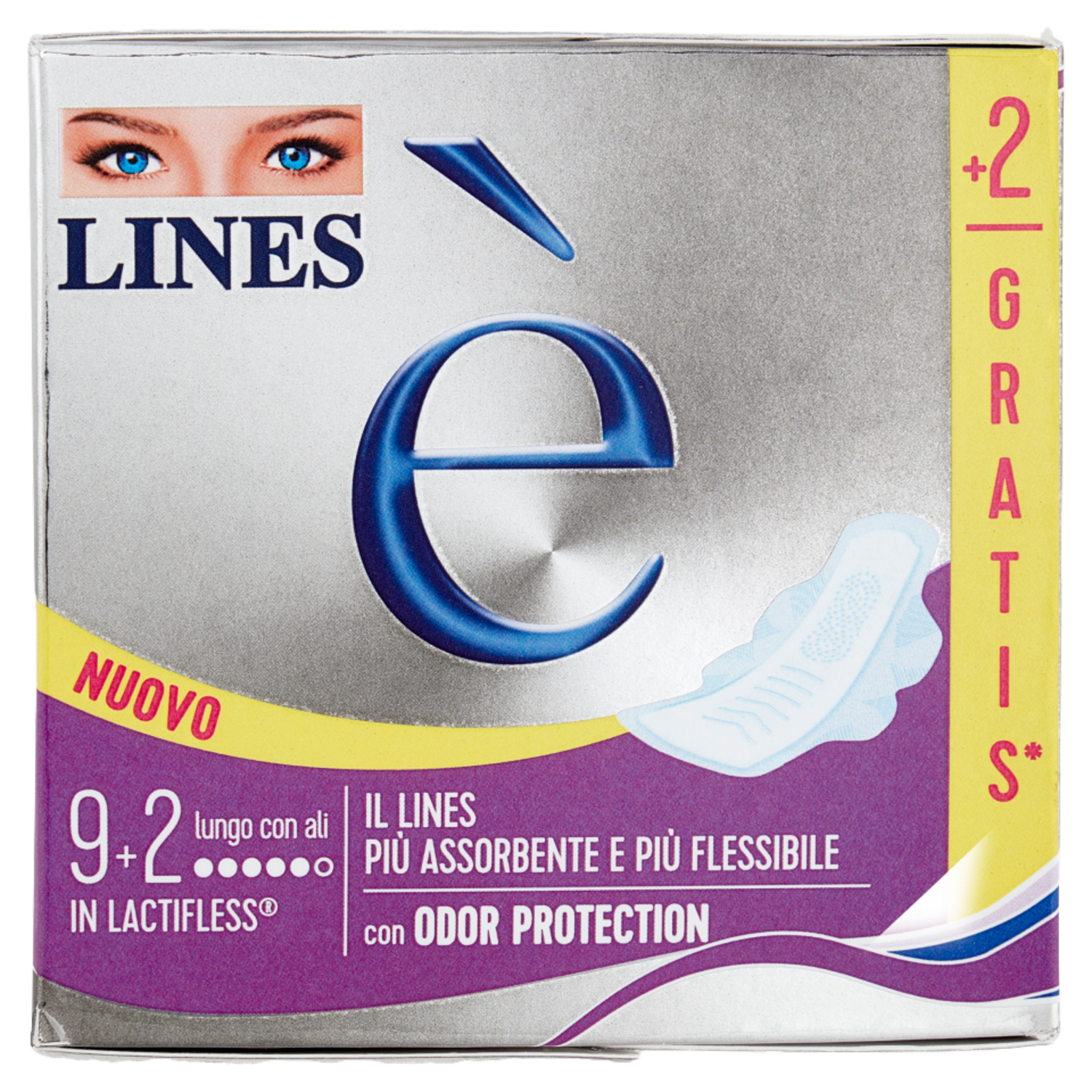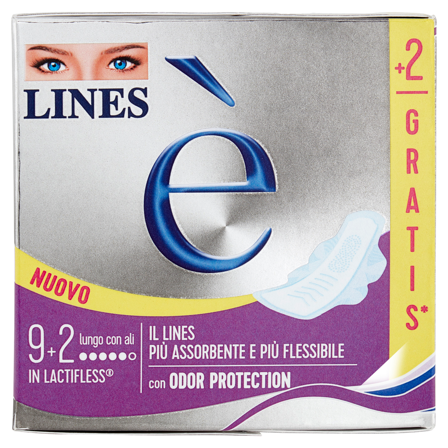 Il Lines più assorbente e più flessibile L'esclusiva tecnologia super assorbente di Lines è spinge il flusso lontano dalla pelle, verso la parte posteriore dell'assorbente, per farti sentire sempre fresca e asciutta. In più il Lactifless, oltre ad essere ipoallergenico, è anche super flessibile e si adatta perfettamente al tuo corpo, come se sparisse. Lines è assorbe come nessun altro e ti senti protetta al 100%. È il più assorbente, è il più flessibile. Lines è assorbe più di ogni altro Lines perchè è l'unico in Lactifless. - Esclusivo Design Assorbenza Infinity I suoi micro-fori e canalini assorbono rapidamente il flusso, cosi ti senti sempre asciutta e protetta. - Novità - Odor Protection Per una sensazione di freschezza, come appena indossato. - Lactifless Un materiale innovativo, ipoallergenico. - Filtrante soft contact Incredibilmente morbido e delicato sulla pelle.