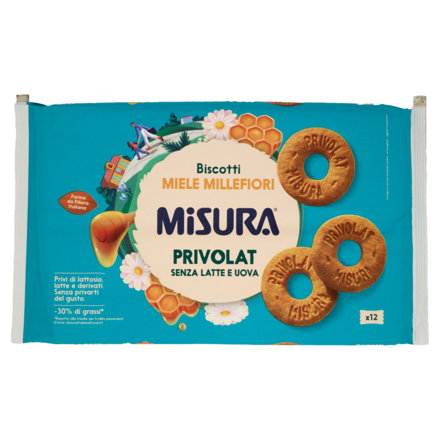 CO₂ Abbiamo Compensato Totalmente le Emissioni di CO₂ di questo prodotto promuovendo progetti di energia rinnovabile. Abbiamo scelto Carta Certificata FSC per una gestione responsabile delle foreste e degli ecosistemi. Filiera 100% italiana Il nostro grano è 100% italiano e proviene da sementi certificate all'origine. Tutto il processo produttivo è Tracciabile, dal seme fino al prodotto finito. Senza lattosio Semplicemente Privolat Tutto il gusto semplice e leggero* del frollino Privolat... e la bontà unica del miele millefiori! Latte e uova non ci sono... e tu non te ne accorgi! Nessun Segreto, il buono è tutto qui! Da portare sempre con te Ideale per le tue pause *-30% di grassi rispetto alla media dei frollini più venduti (Fonte: UnioneItalianaFood.it) www.misura.it Frollino con miele senza latte e uova
