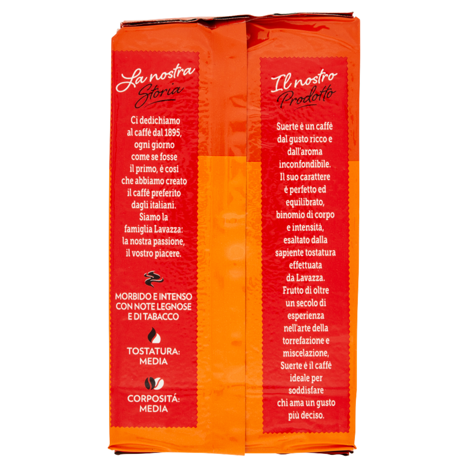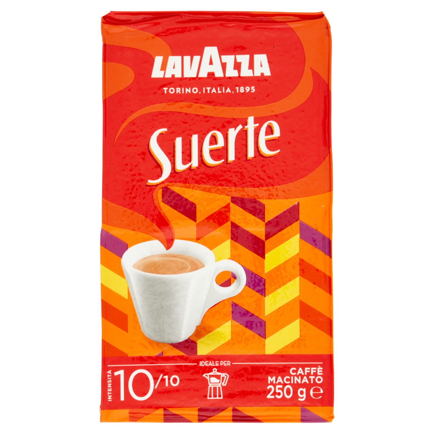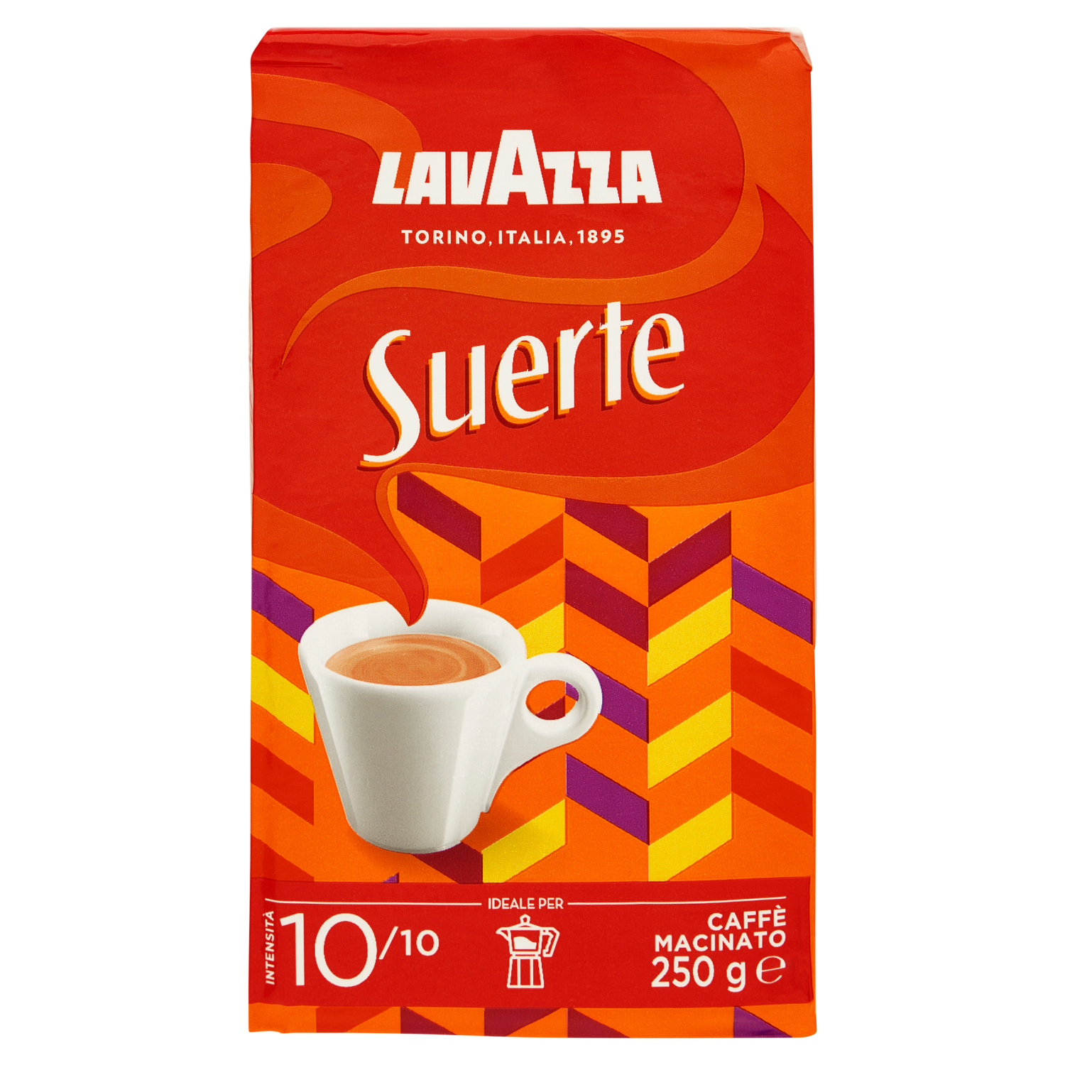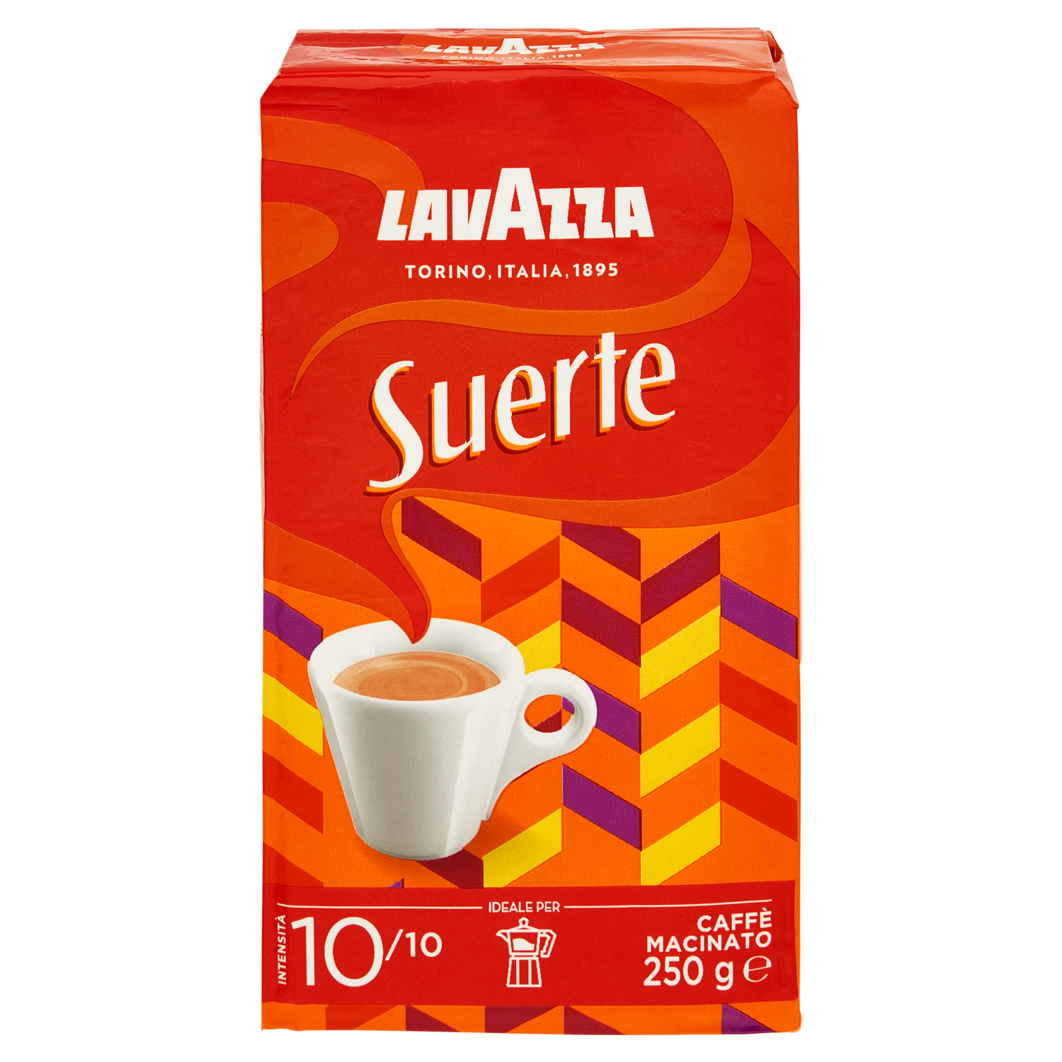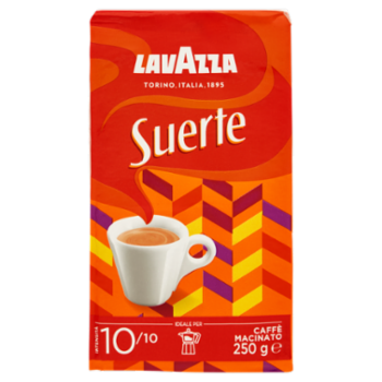 Il nostro Prodotto Suerte è un caffè dal gusto ricco e dall'aroma inconfondibile. Il suo carattere è perfetto ed equilibrato, binomio di corpo e intensità, esaltato dalla sapiente tostatura effettuata da Lavazza. Frutto di oltre un secolo di esperienza nell'arte della torrefazione e miscelazione, Suerte è il caffè ideale per soddisfare chi ama un gusto più deciso. Morbido e intenso con note legnose e di tabacco Tostatura: media Corposità: media
