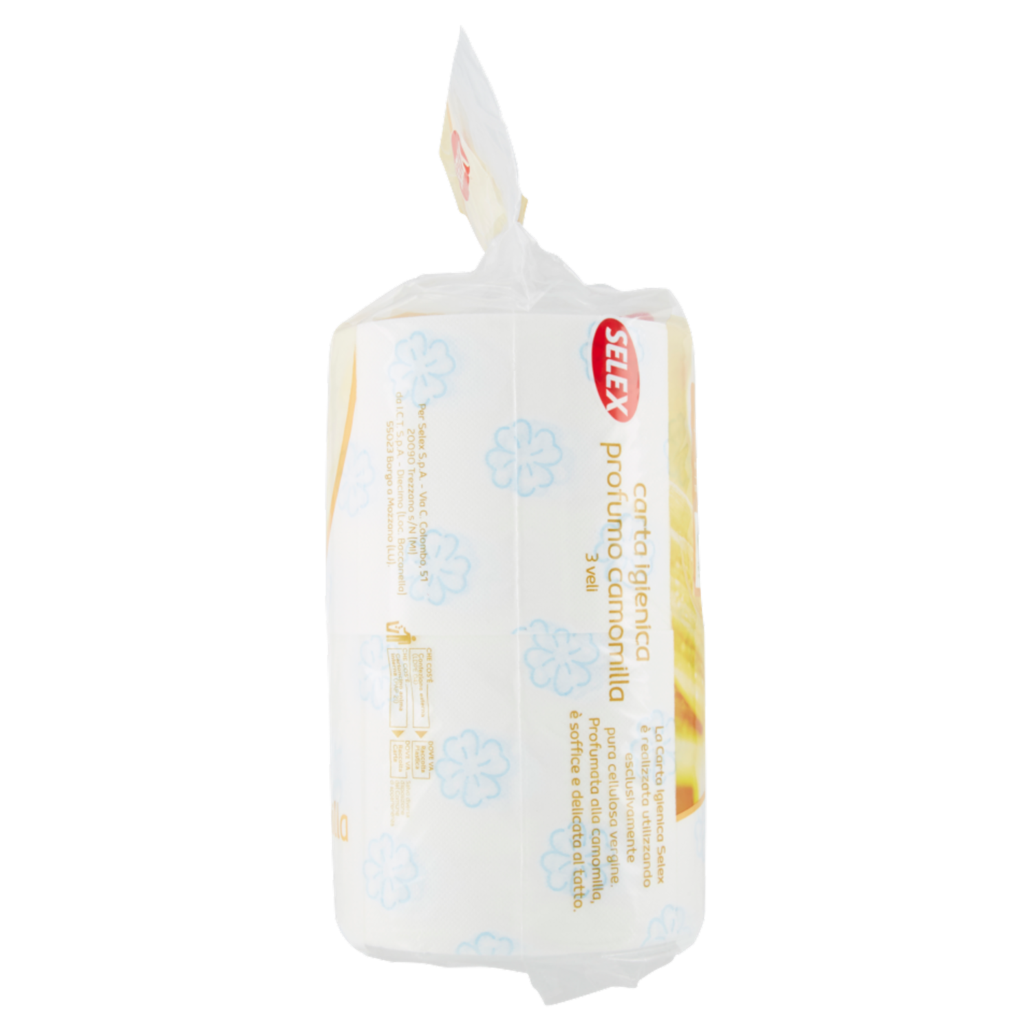 La Carta Igienica Selex è realizzata utilizzando esclusivamente pura cellulosa vergine. Profumata alla camomilla, è soffice e delicata al tatto.