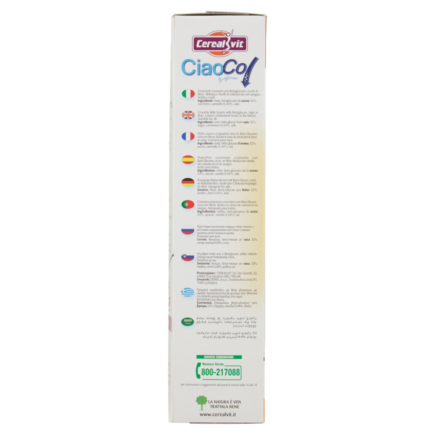 Servizio consumatori Numero Verde 800-217088 per informazioni o suggerimenti dal lunedì al venerdì dalle 16 alle 18 www.cerealvit.it Cerealvit Srl via Grandi, 22 20060 Truccazzano (MI)