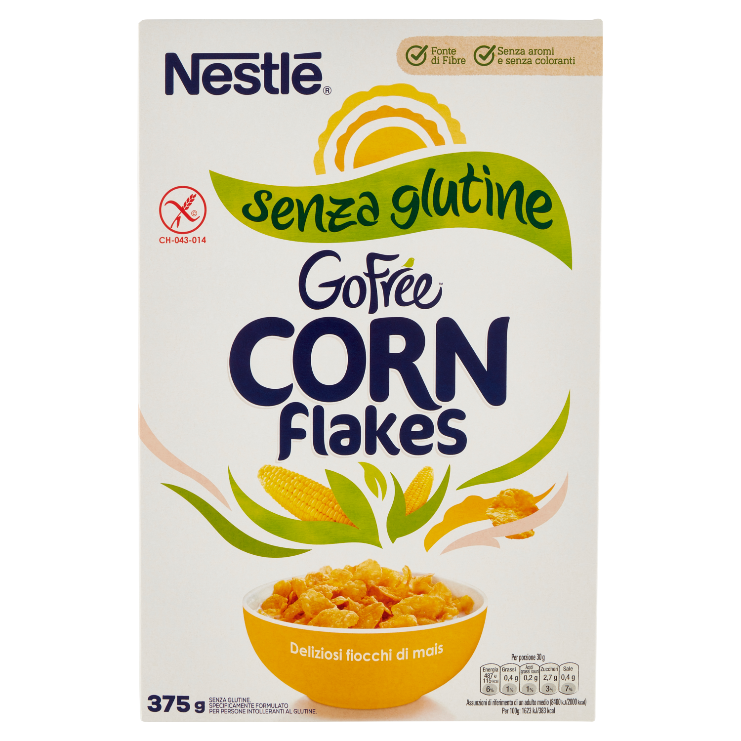 Croccanti fiocchi di mais, perfetti per la colazione di tutta la famiglia: Buonissimi! Lo sapevi che... - contengono 5 vitamine - Senza glutine. Specificamente formulato per persone intolleranti al glutine. Scopri l'intera gamma NESTLÉ Cereali su www.nestle-cereals.com/it - Fonte di Fibre - Senza aromi e senza coloranti - Senza glutine - Deliziosi fiocchi di mais - Senza glutine. Specificamente formulato per persone intolleranti al glutine
