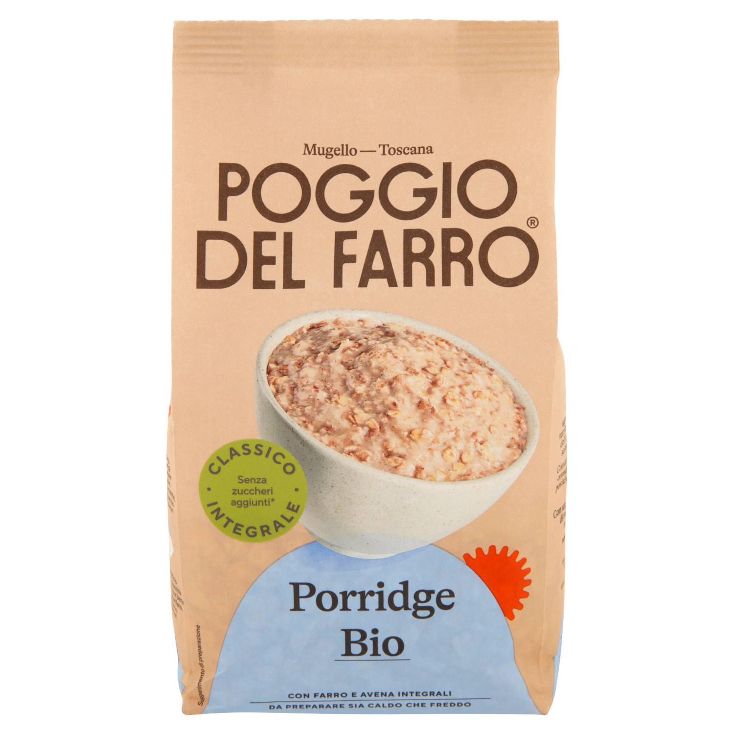 Il nostro Porridge è una base di cereali integrali nutrienti ed energetici: il Farro e l'Avena. Completa il Porridge come più ti piace! Miele, Burro di arachidi, Sciroppo d'acero, Marmellata, Latte condensato, Cioccolato Frutta secca, Frutti di bosco, Banane a fettine, Yogurt greco, Cannella, Semi Per una colazione semplice, ma gustosa e saziante, che puoi personalizzare ogni giorno abbinando i tuoi ingredienti preferiti!