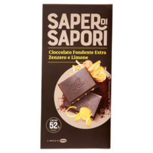 Cioccolato fondente extra con zenzero candito e olio di limone. (Cacao: 52% minimo)