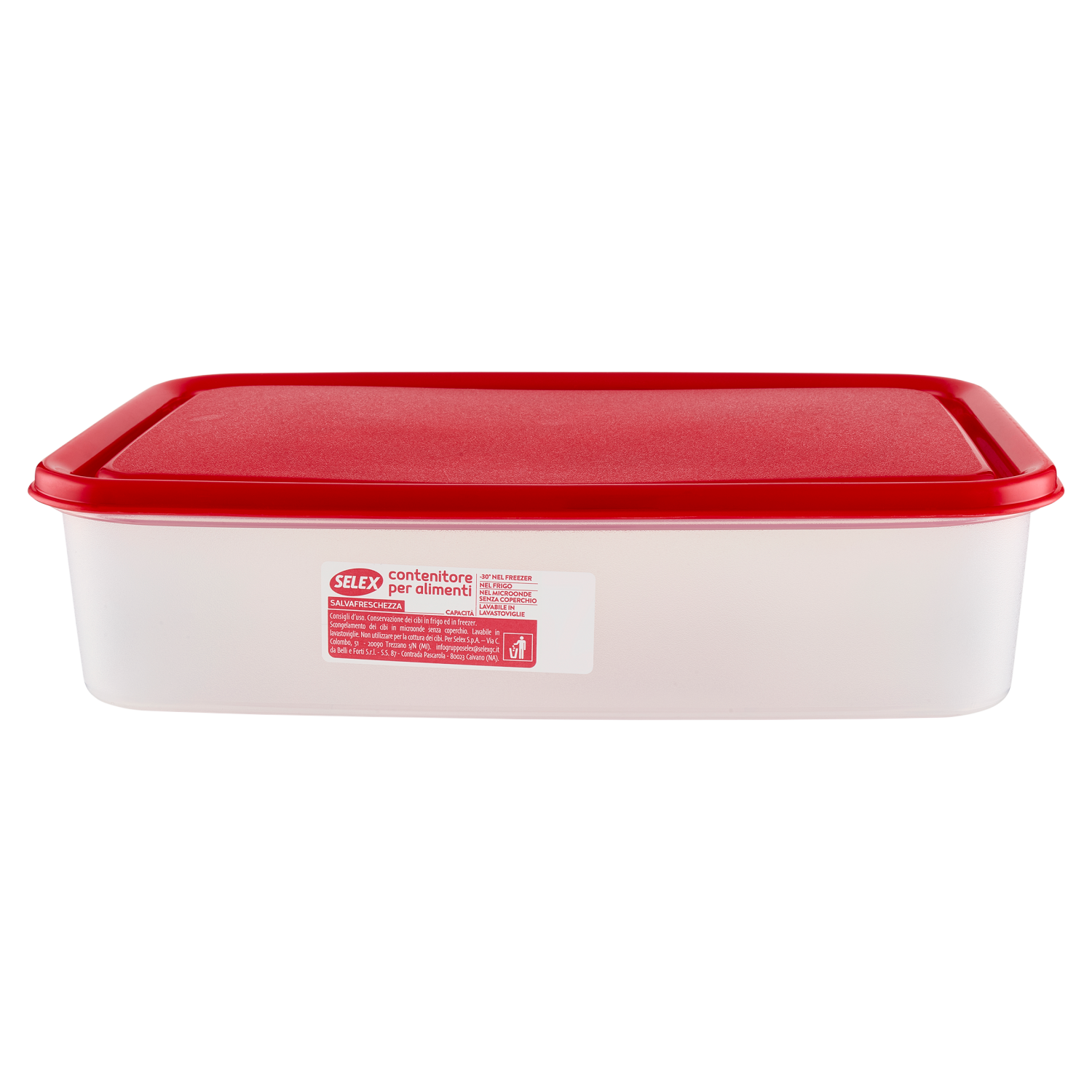 Consigli d'uso. Conservazione dei cibi in frigo ed in freezer. Scongelamento dei cibi in microonde senza coperchio. Lavabile in lavastoviglie. Non utilizzare per la cottura dei cibi.