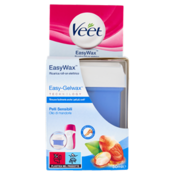 La ricarica di cera è da utilizzare esclusivamente con il roll-on elettrico EasyWax Veet, un sistema per scaldare la cera in modo facile e veloce, che garantisce risultati altamente professionali anche a casa propria. Formulata con gli stessi ingredienti delle cere impiegate nei saloni di bellezza, EasyWax di Veet rimuove i peli corti alla radice, regalando una pelle liscia fino a 4 settimane. Grazie all'olio di mandorla, noto per le sue proprietà idratanti e particolarmente indicato per pelli sensibili, EasyWax di Veet lascia la pelle morbida e liscia al tatto. Inoltre, con un uso regolare, la ricrescita diventa più rada, sottile e morbida.