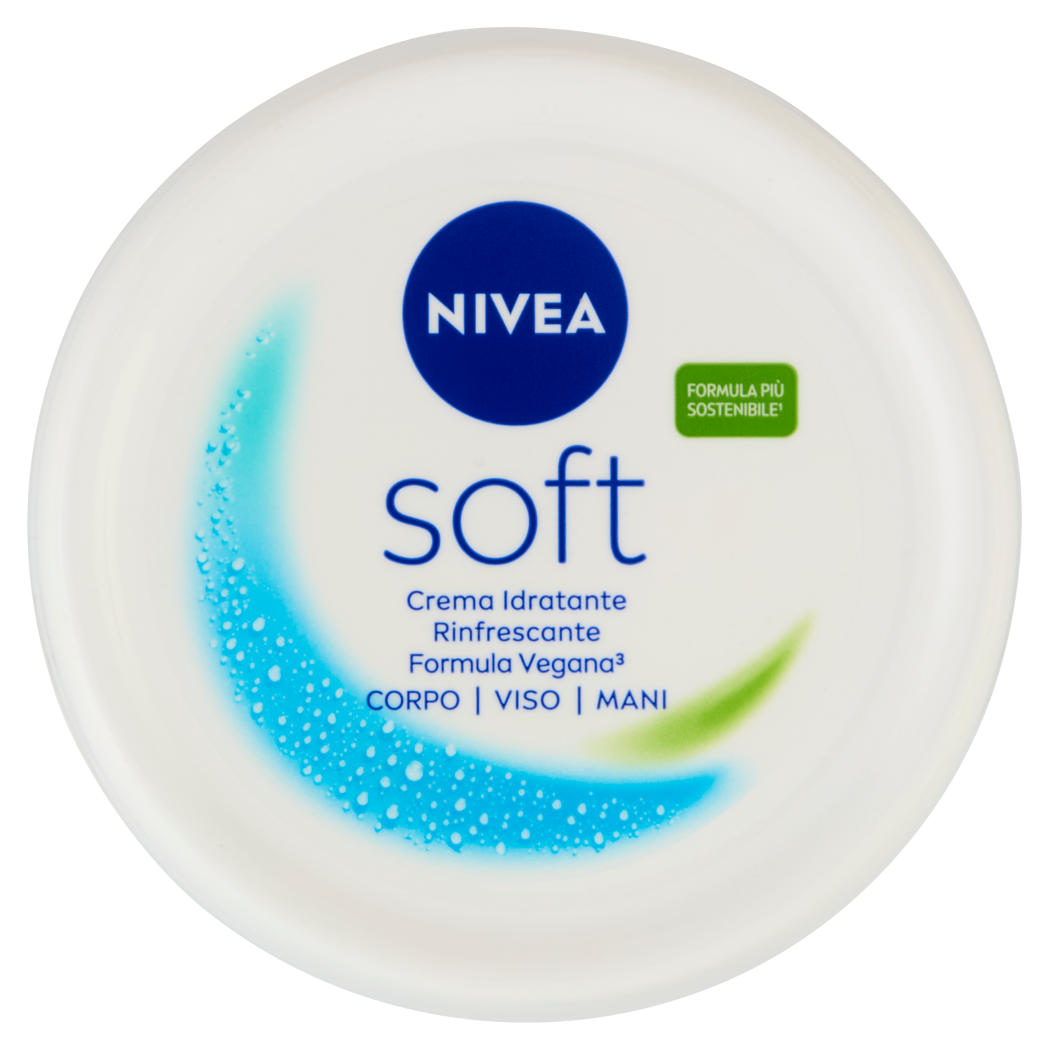 Nivea Soft idrata intensamente e rinfresca la tua pelle. 48h di idratazione per una pelle morbida Assorbimento rapido Olio di Jojoba 100% naturale & Vitamina E 95% ingredienti di origine naturale² ²gli ingredienti naturali mantengono +50% del loro stato naturale dopo essere processati, inclusa l'acqua