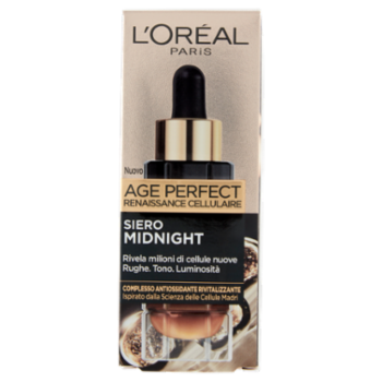 Il nostro siero di ultima generazione Ispirato dalla Scienza delle Cellule Madri Quando dormi, le cellule madri, cellule preziose perché all'origine delle altre, sono più efficaci. La loro attività ottimale avviene di notte, con un picco che inizia a mezzanotte. Il Siero Midnight è stato formulato per favorire il rinnovamento cellulare e risvegliare milioni di nuove cellule per una pelle dall'aspetto più giovane. - Non unge, non appiccica - Texture confortevole e cremosa - Efficace su tutte le tonalità e tipi di pelle Testato da istituti indipendenti Il mattino seguente La pelle è intensamente idratata e appare riposata come dopo una piacevole notte di sonno. Dopo 1 settimana La pelle appare più giovane, lucente e luminosa. Dopo 4 settimane Le rughe sono ridotte e l'incarnato è radioso. La pelle appare ritesa, come liftata per l'84% delle donne*. *Test di autovalutazione su 106 donne, dopo 1 settimana e 4 settimane. Complesso antiossidante rivitalizzante Protegge la pelle dai radicali liberi per favorire la rigenerazione durante la notte, quando la pelle è più ricettiva al trattamento. Neoesperidina Antiossidante ad ampio spettro estratto dall'arancia amara attraverso un processo di chimica verde. Vitamina E Antiossidante essenziale naturalmente presente nella pelle il cui livello diminuisce durante il giorno a causa di aggressioni esterne.