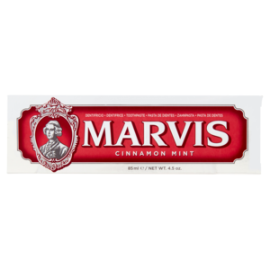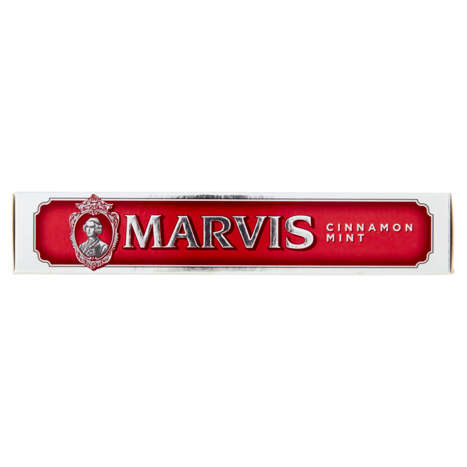 Marvis: il piacere del gusto. Una ricca e cremosa pasta dentifricia offre una sensazione intensa di gusto, con l'uso dello spazzolino aiuta a rimuovere la placca per un sorriso bianco e splendente. Cannella e menta piperita, in una nota aromatica sorprendente e lungamente rinfrescante.