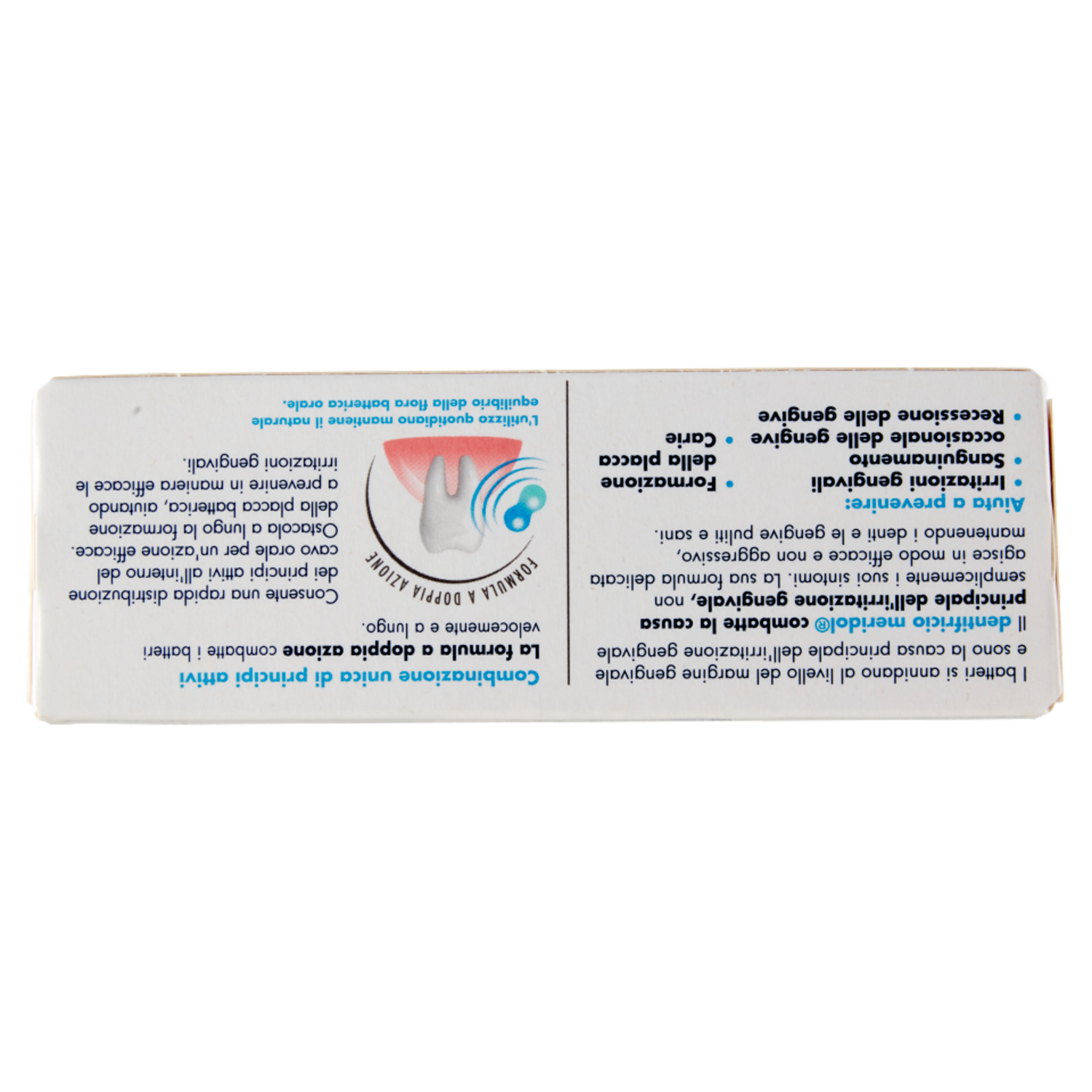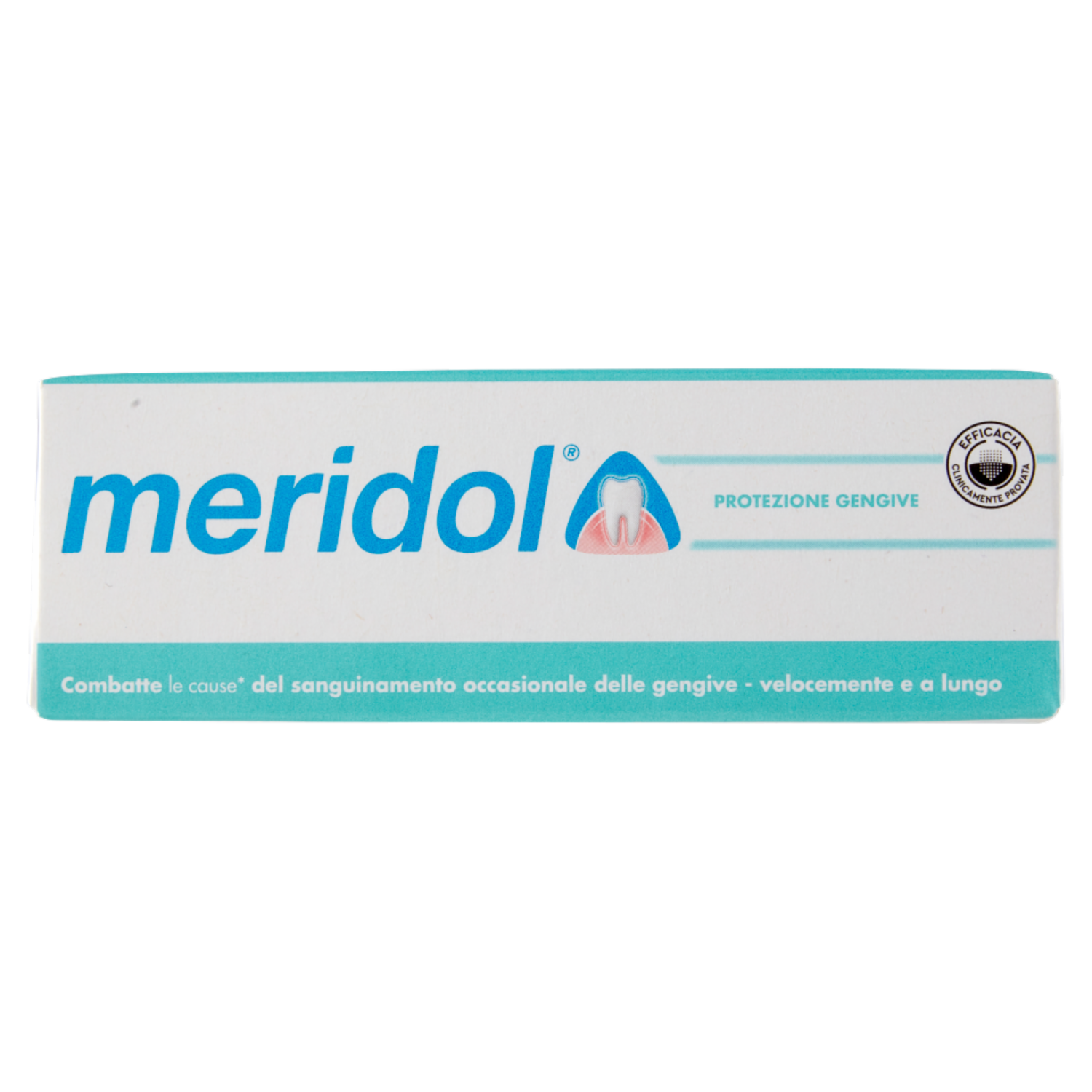 I batteri si annidano al livello del margine gengivale e sono la causa principale dell'irritazione gengivale Il dentifricio meridol combatte la causa principale dell'irritazione gengivale, non semplicemente i suoi sintomi. La sua formula delicata agisce in modo efficace e non aggressivo, mantenendo i denti e le gengive puliti e sani. Aiuta a prevenire: - Irritazioni gengivali - Sanguinamento occasionale delle gengive - Recessione delle gengive - Formazione della placca - Carie Combinazione unica di principi attivi La formula a doppia azione combatte i batteri velocemente e a lungo. Formula a doppia azione Consente una rapida distribuzione dei principi attivi all'interno del cavo orale per un'azione efficace. Ostacola a lungo la formazione della placca batterica, aiutando a prevenire in maniera efficace le irritazioni gengivali. L'utilizzo quotidiano mantiene il naturale equilibrio della flora batterica orale.
